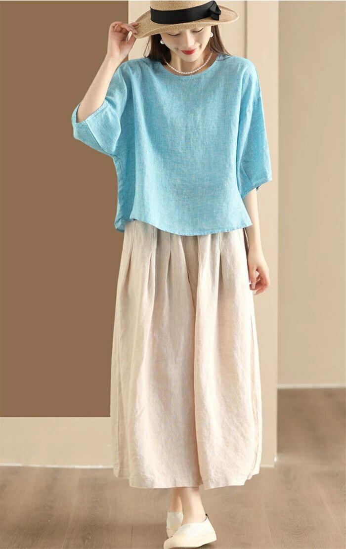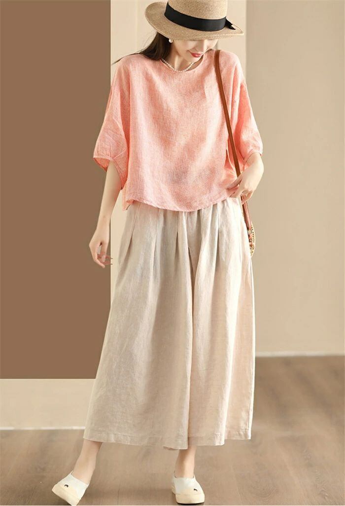 ト無地スカート綿麻混スカートプリーツスカートリネンスカートサロペット