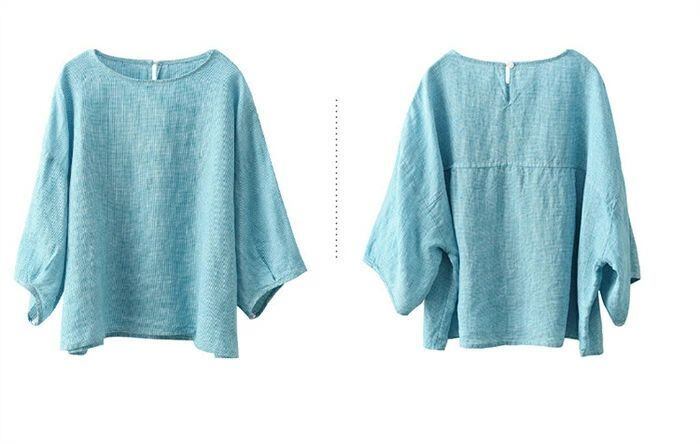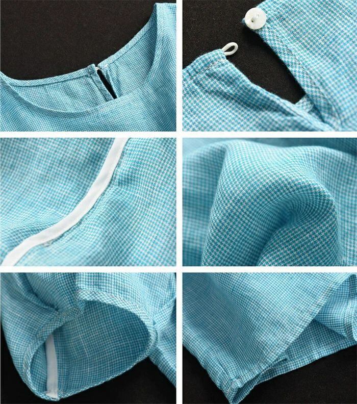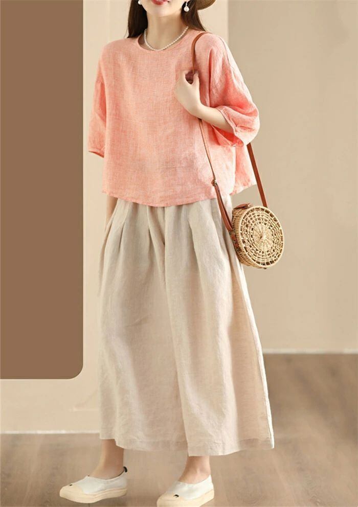 ブラウス チェック柄 レディース 春夏 チェックシャツ 麻ブラウス シャツブラウス リネン ナチュラル 五分袖 シャツ 麻 プルオーバー クル