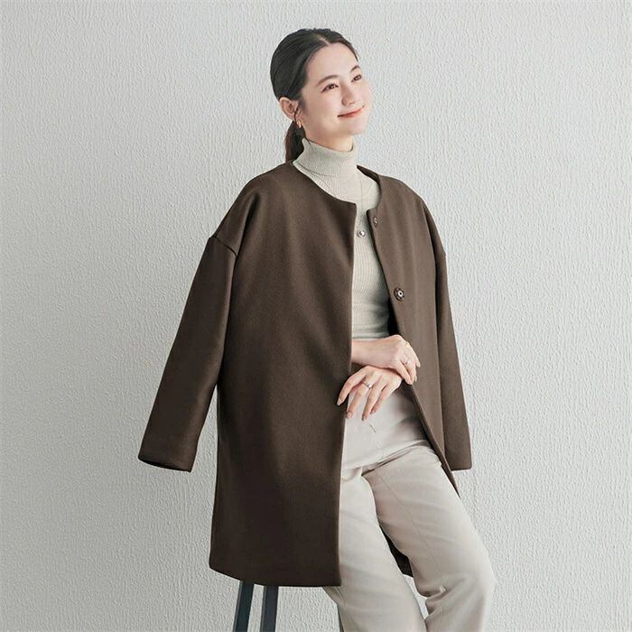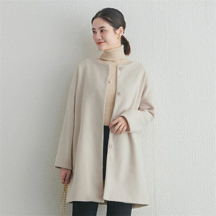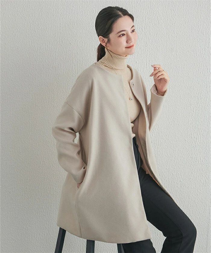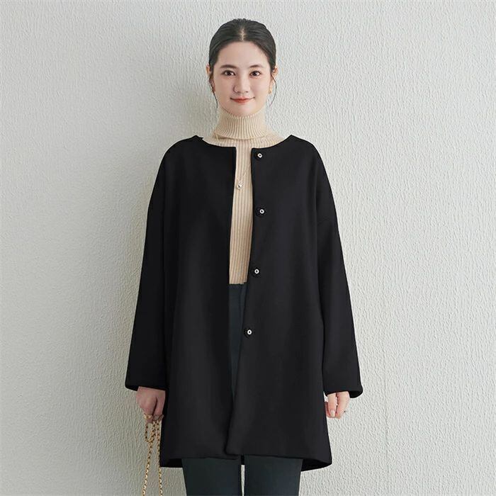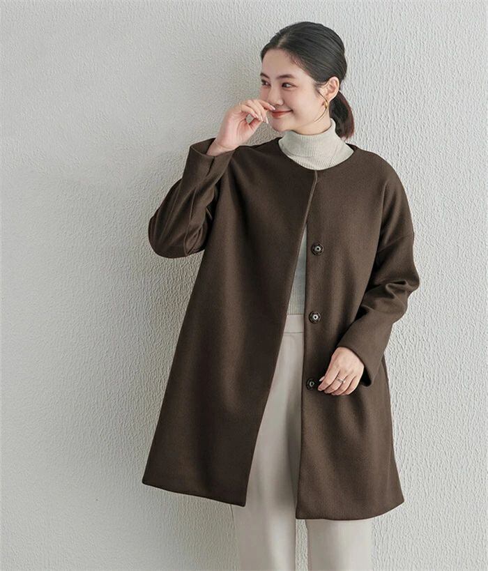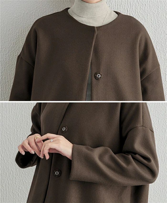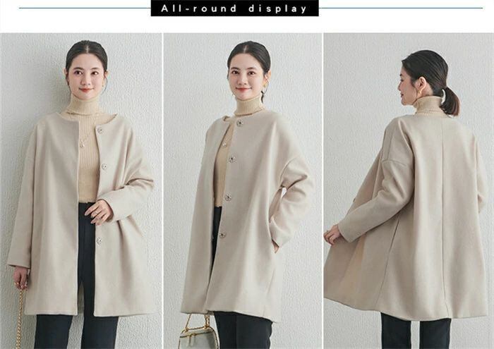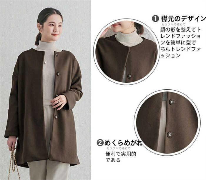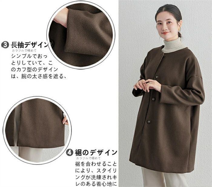 コート ノーカラーコート レディース 秋冬 アウター ジャケット 長袖 羽織 ロングコート ノーカラー ロング丈 前開き トップス ロングアウ