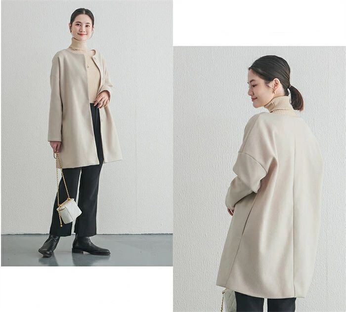 コート ノーカラーコート レディース 秋冬 アウター ジャケット 長袖 羽織 ロングコート ノーカラー ロング丈 前開き トップス ロングアウター お洒落 無地 ゆったり 体型カバー モード カジュアル 着回し シンプル オフィス 通勤OL 通学 20代 30代 40代 50代