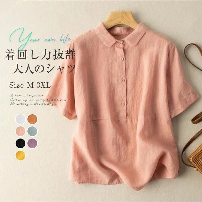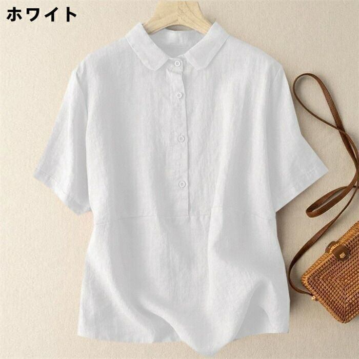 シャツ ブラウス 半袖 綿麻調 レディース シャツブラウス コットンリネン トップス 春 夏 フォーマル 大人 可愛い 森ガール おしゃれ きれいめ ゆったり 体型カバー 重ね着 白シャツ OL 通勤 オフィス 着回し 入学式 卒業式 入園式 シンプル 無地 涼しい 通気性 可愛い カジュアル オフィス ナチュラル 定番 可愛い