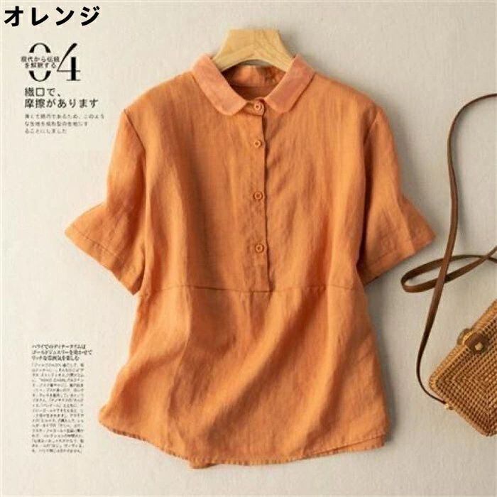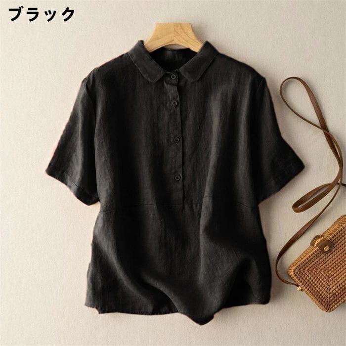 シャツ ブラウス 半袖 綿麻調 レディース シャツブラウス コットンリネン トップス 春 夏 フォーマル 大人 可愛い 森ガール おしゃれ きれ