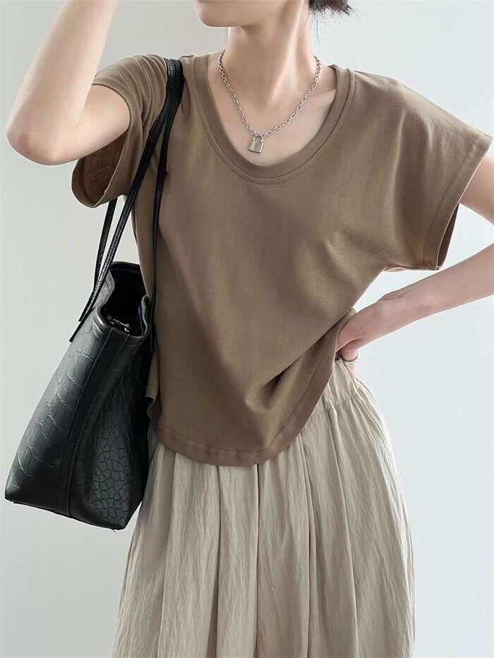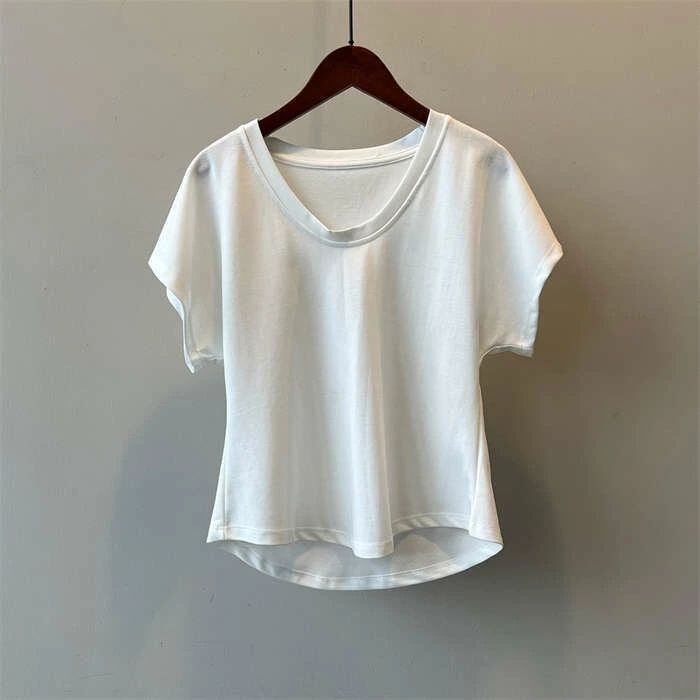 Tシャツ レディース フレンチスリーブ きれいめ 40代 春夏 上品 半袖Tシャツ ブラウス 綿 白トップス Uネック ショート丈 オシャレ 韓国風