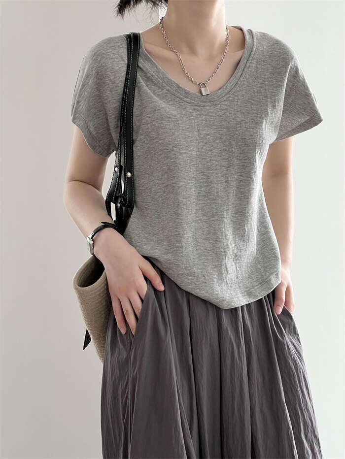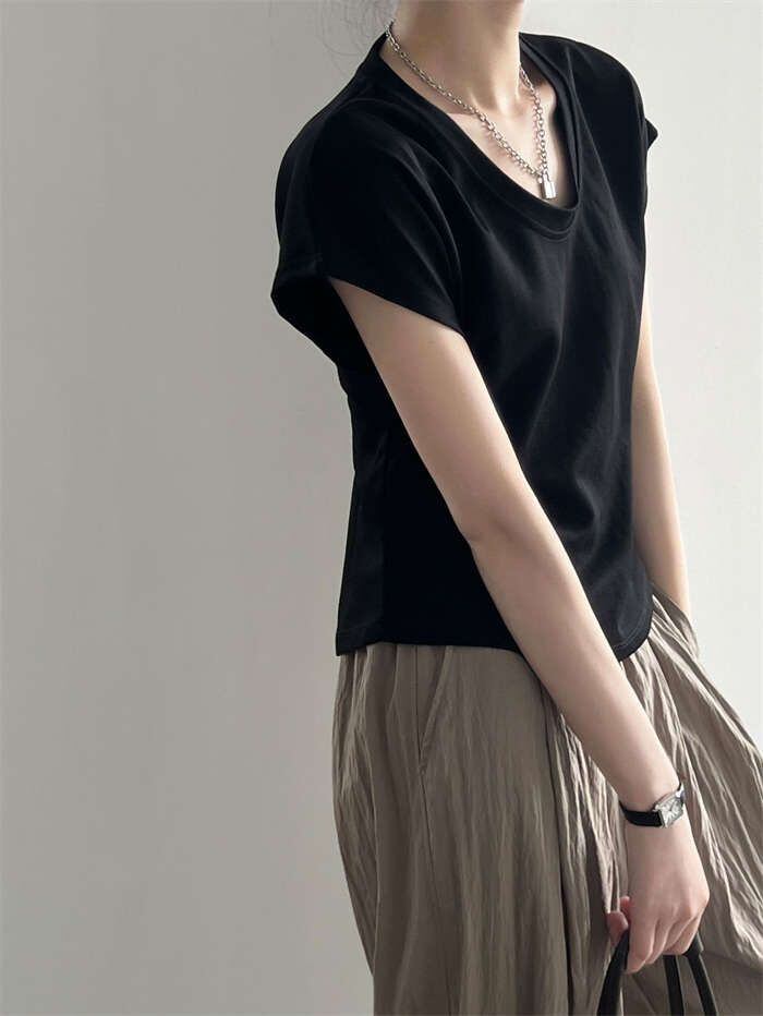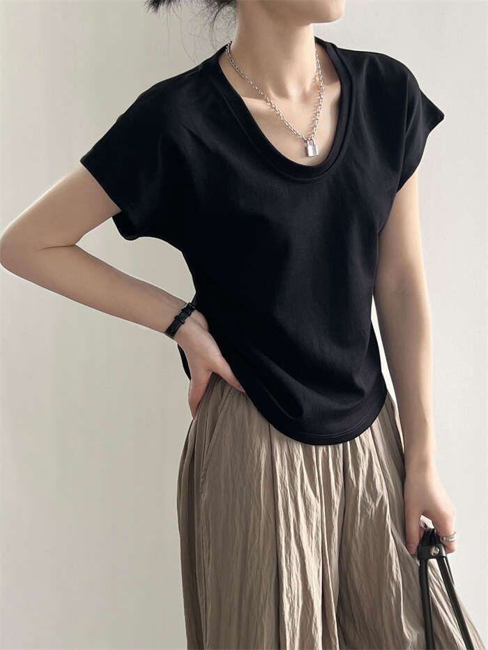 Tシャツ レディース フレンチスリーブ きれいめ 40代 春夏 上品 半袖Tシャツ ブラウス 綿 白トップス Uネック オシャレ 韓国風 カットソー 無地 可愛い インナー Tシャツ トップス フレンチ 半袖 カジュアル オフィス シンプル きれいめ 30代 50代 着回し 送料無料