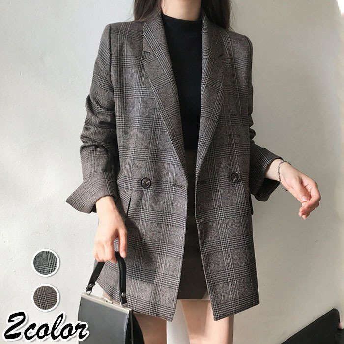 ブレザー スーツ レディース 秋新作 長袖テーラードジャケット オシャレ チェック柄 ブレザースーツ オフィス 30代アウター カジュアル 韓