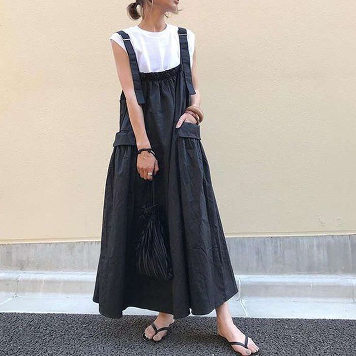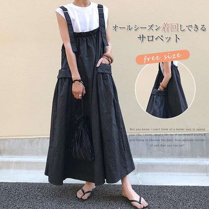 サロペットワンピース レディース サロペット ワンピース ジャンパースカート サロペットワンピ ロングワンピース キャミソール ワンピース ゆったり 着痩せ 体型カバー 春 夏 オールインワン ポケット付き ゆったり 大きいサイズ 無地 レイヤード風 重ね着 送料無料 20代 30代 40代 大きいサイズ ゆったりめ 春コーディ 夏コーデ カジュアル