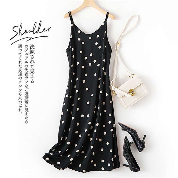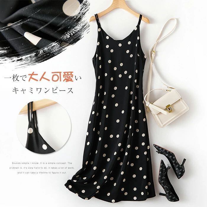 ワンピース 夏 レディース 水玉 リゾート 膝丈ワンピース ドット柄 キャミソールワンピース ロングワンピース リゾート ロング ミモレ丈リ