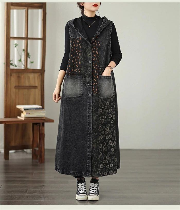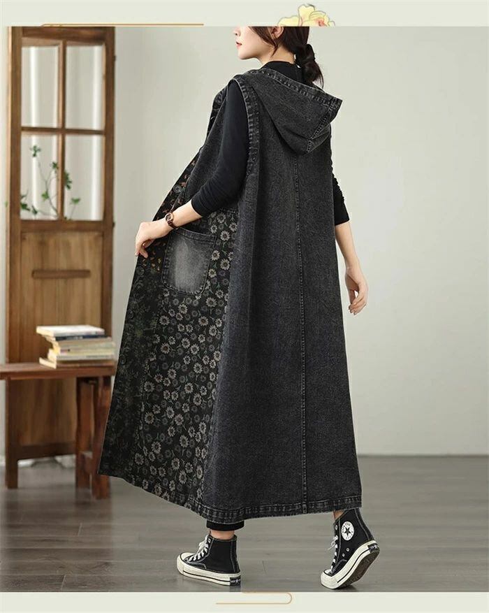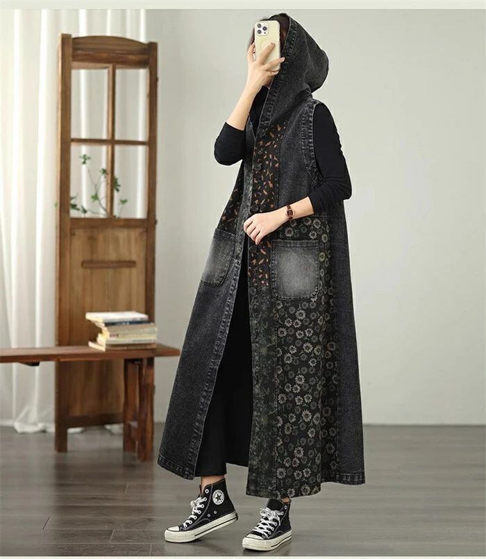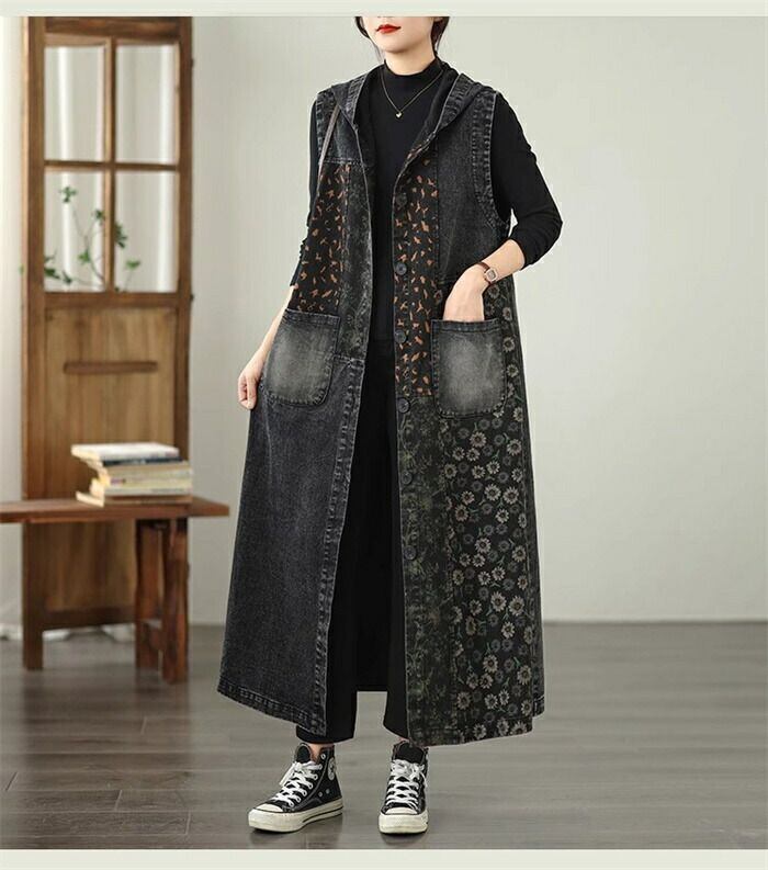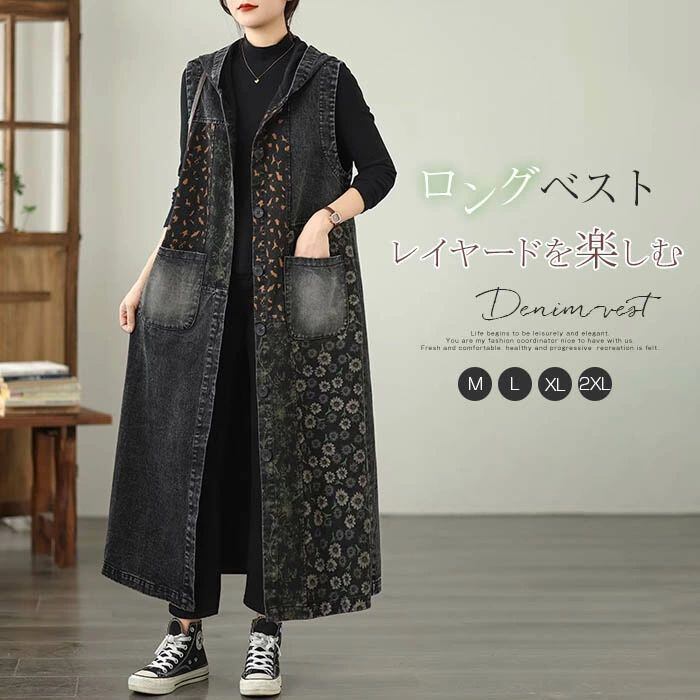 デニム ベスト レディース デニム ジレ ジレベスト ノースリーブ ロング ジレ ロング ベスト トレンチベスト トップス ロング ベスト トレンチコート 春 秋 大きいサイズ 前開き フード付き カーディガン 重ね着 トップス カジュアル ゆったり 体型カバー 送料無料 コーデ 着回し 前開き ベスト ジレ 通勤 OL 20代 30代 40代 50代 60代