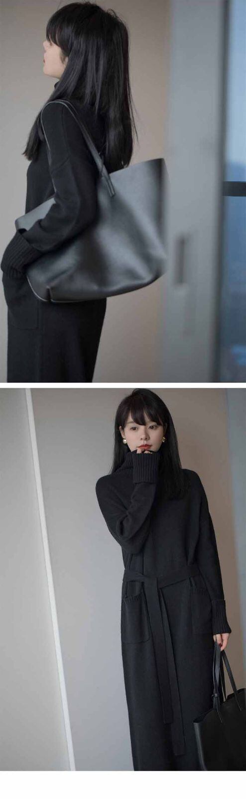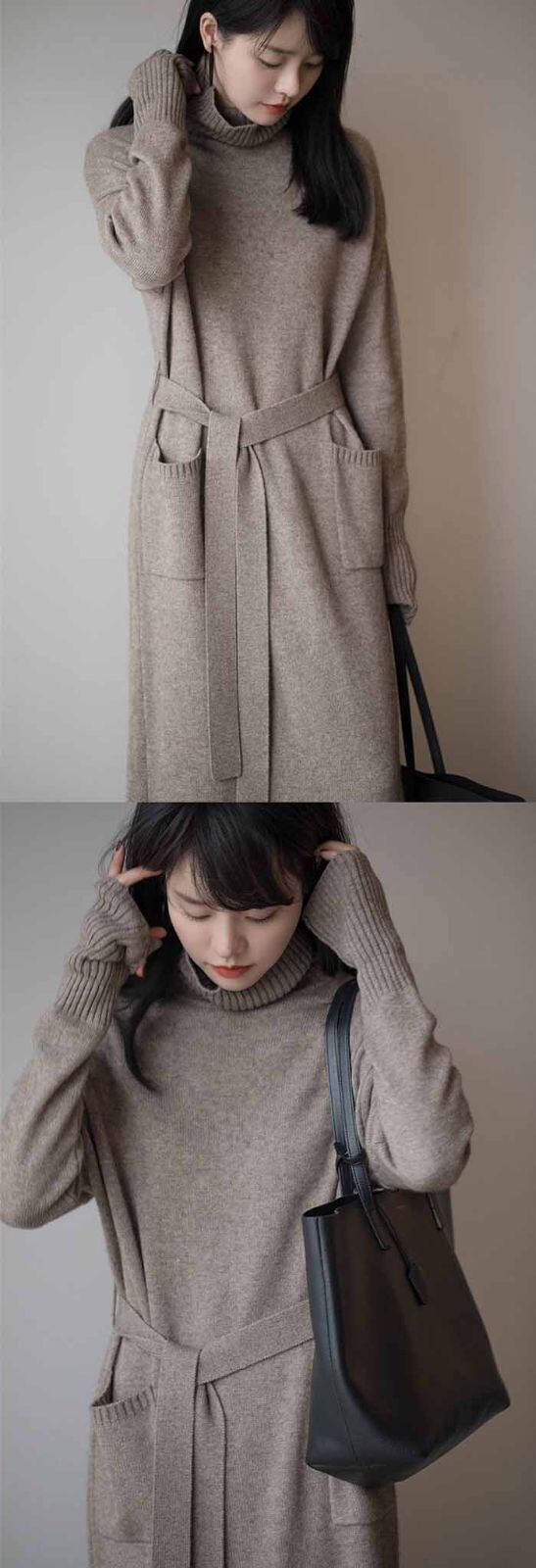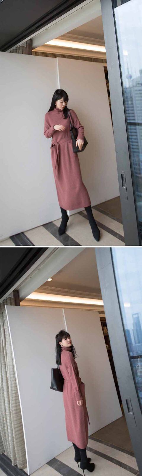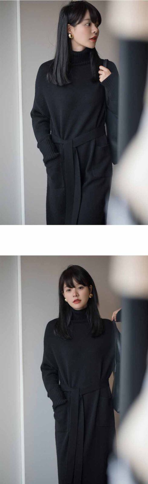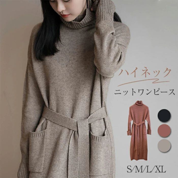 ニットワンピース ロングニット ワンピース ニット タートルネック ハイネック マキシ丈 レディース 長袖 ゆったり シンプル カジュアル 体