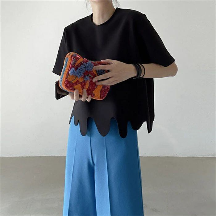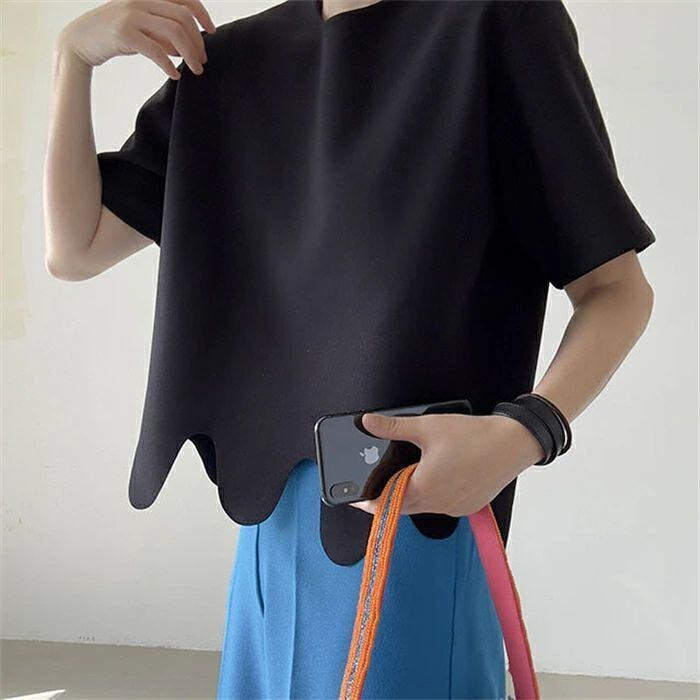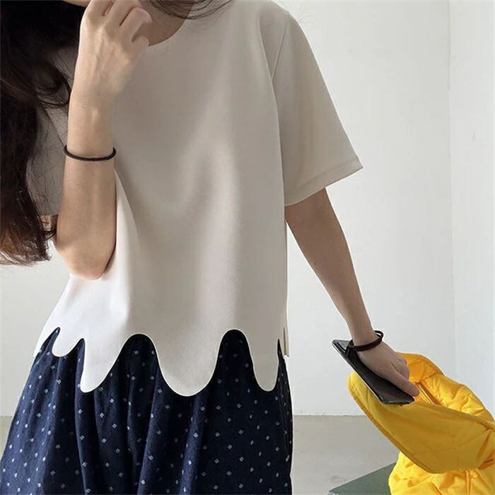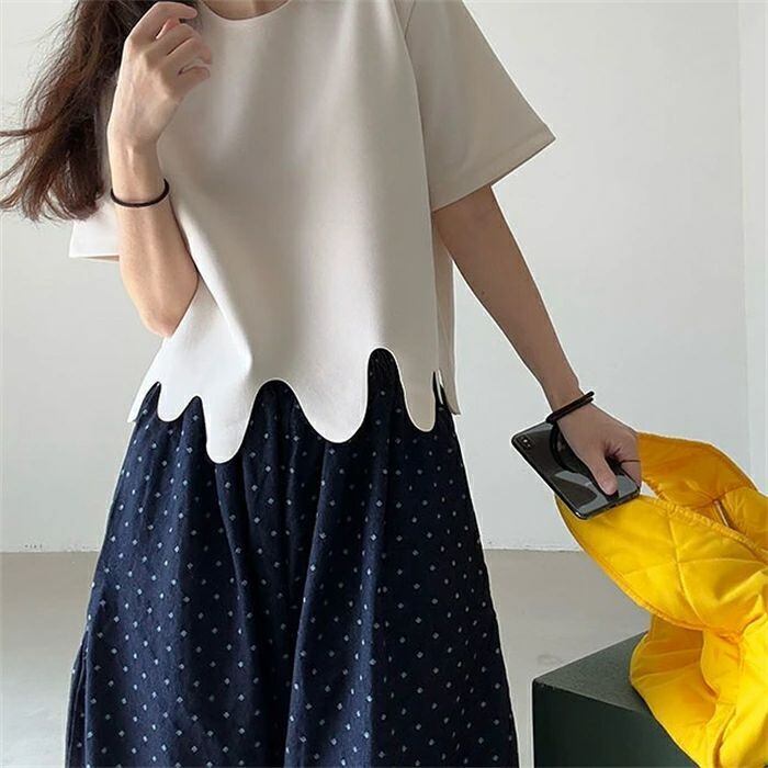 Tシャツ レディース 半袖 無地 きれいめ 春夏 上品 半袖Tシャツ ブラウス 個性的 白トップス 裾デザイン オシャレ カジュアル クルーネック