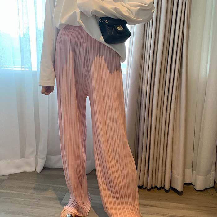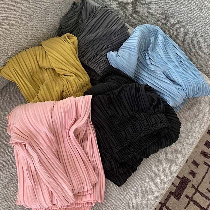 プリーツパンツ ワイドパンツ レディース シフォン ボトムス パンツ プリーツ パンツ 2丈選べる ロング丈 ショート丈 トレンド 流行り お洒