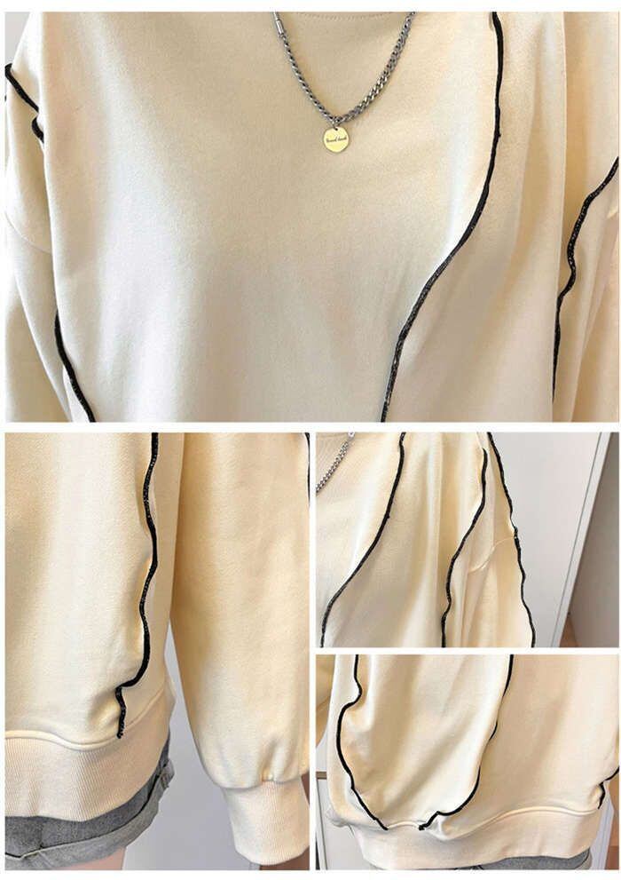 配色ステッチデザインが目を惹くトレンドライクなオーバーサイズプルオーバーの登場?