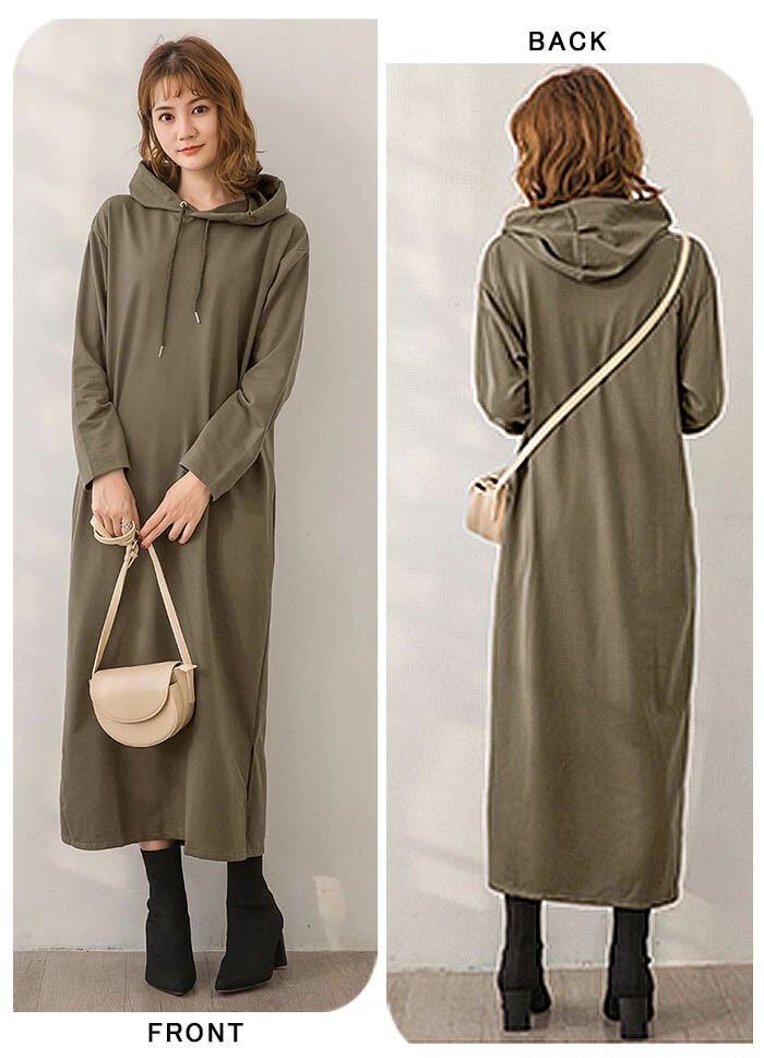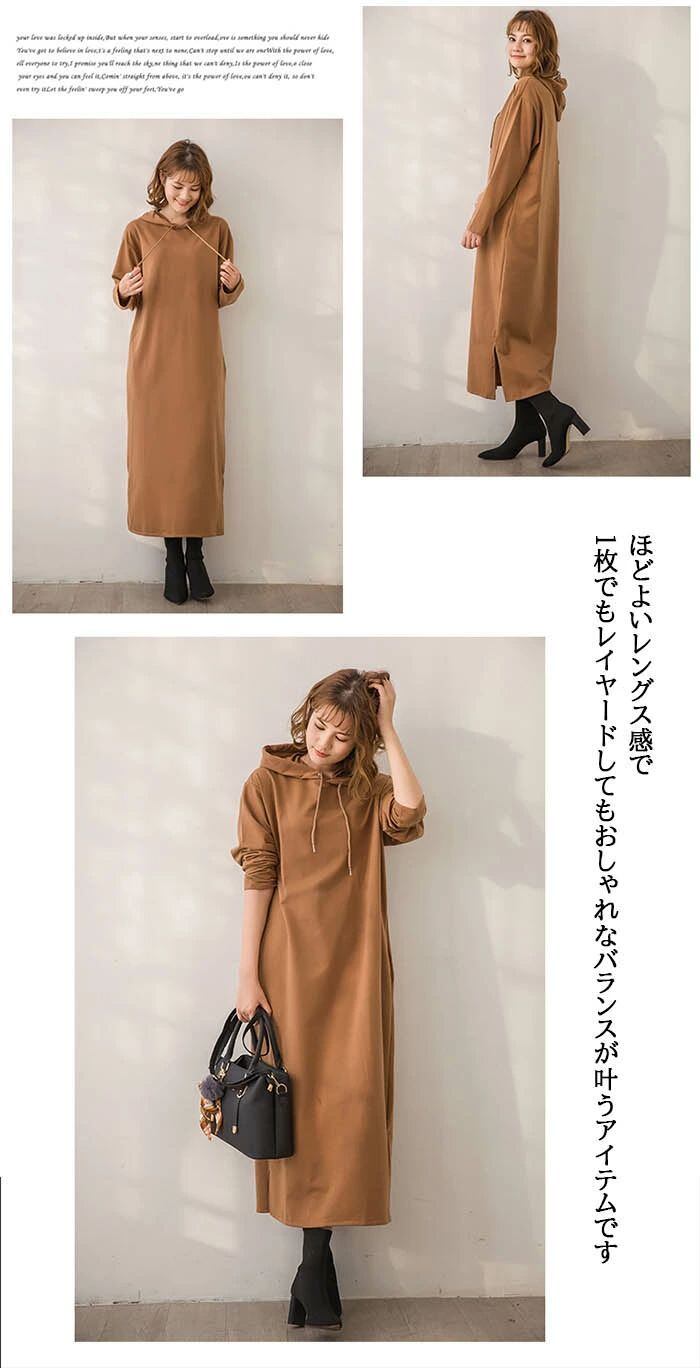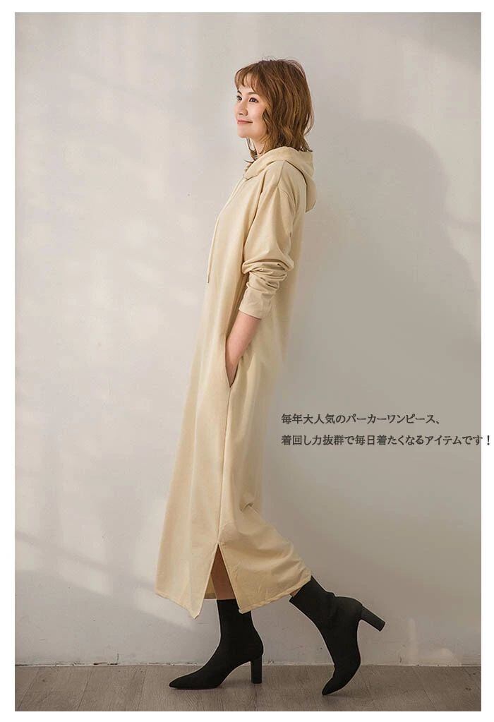 パーカーワンピース 春秋 レディース パーカー ワンピースワンピース 大きサイズ マキシ丈 ロングワンピース ロング丈 裏起毛ワンピース 秋