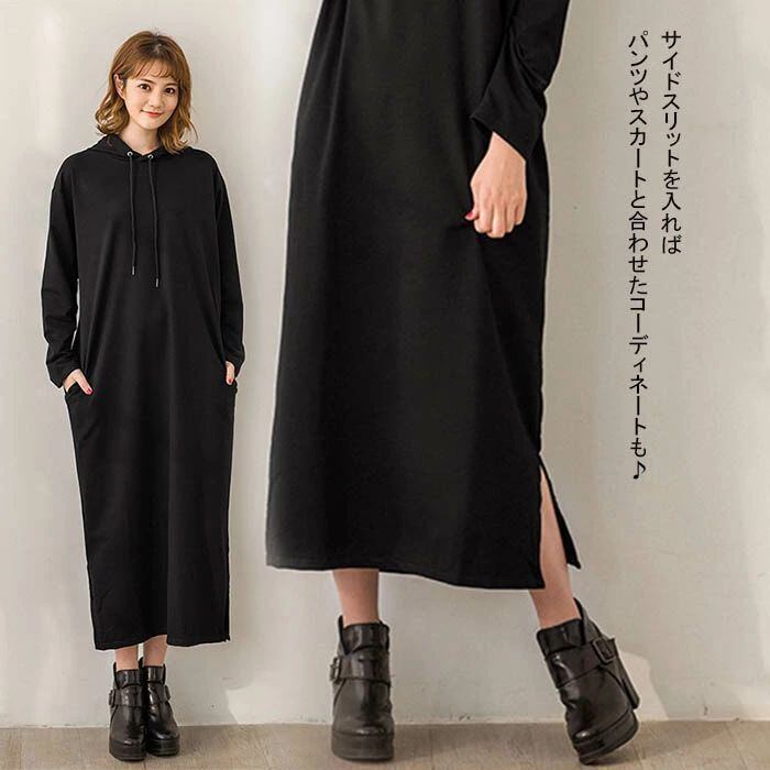 パーカーワンピース 裏起毛 ロングワンピース ワンピース 裏起毛 マキシ丈 ロング丈 秋冬 フード付き レディース 長袖 カットソーワンピ 大きサイズ 体型カバー カジュアル ゆったり トレンド お呼ばれ着痩せ 体型カバー 秋服 ゆったり 黒 白 シンプル きれいめ 可愛い カジュアル 通勤 通学 OL 入学式 入園式 卒業式 卒園式 謝恩会 お呼ばれ お女子会 ギフト プレゼント 母の日 春 夏 秋 冬 デイリー 日常 オフィス お洒落 上品 20代 30代 40代 50代 オールシーズン 送料無料