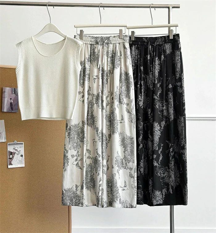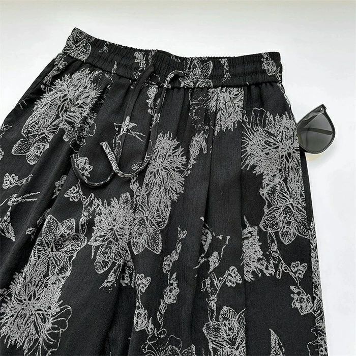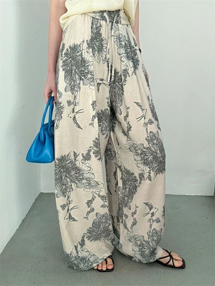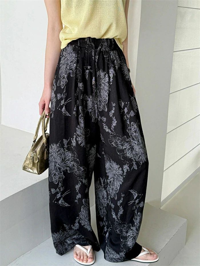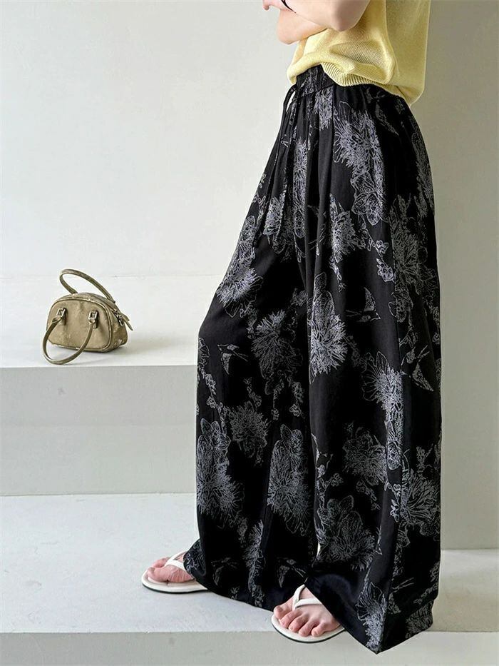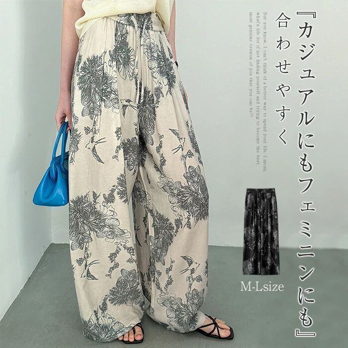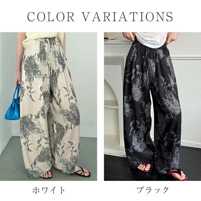 即納 ワイドパンツ レディース ガウチョパンツ ガウチョ リラックス パンツ ボトムス イージーパンツ パンツ 花柄 ワ総柄 アート ワイド ロ