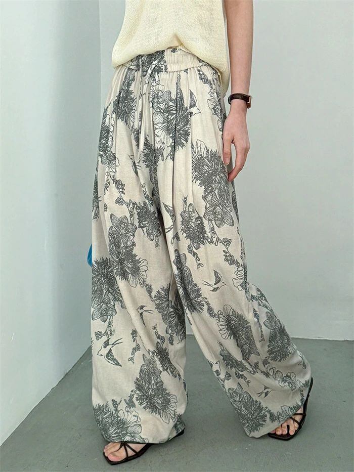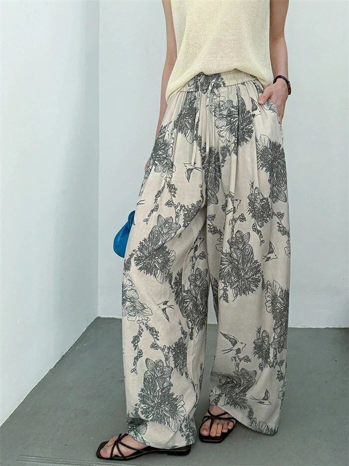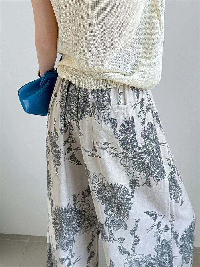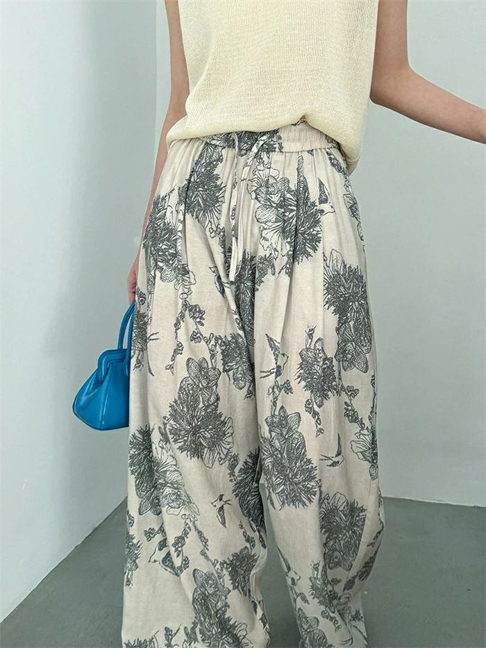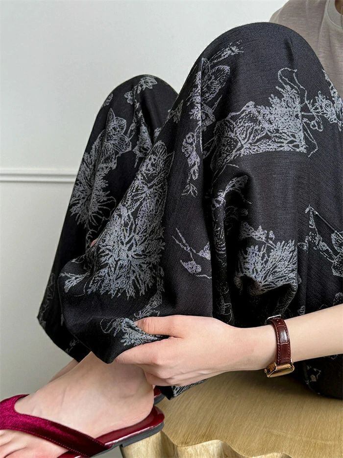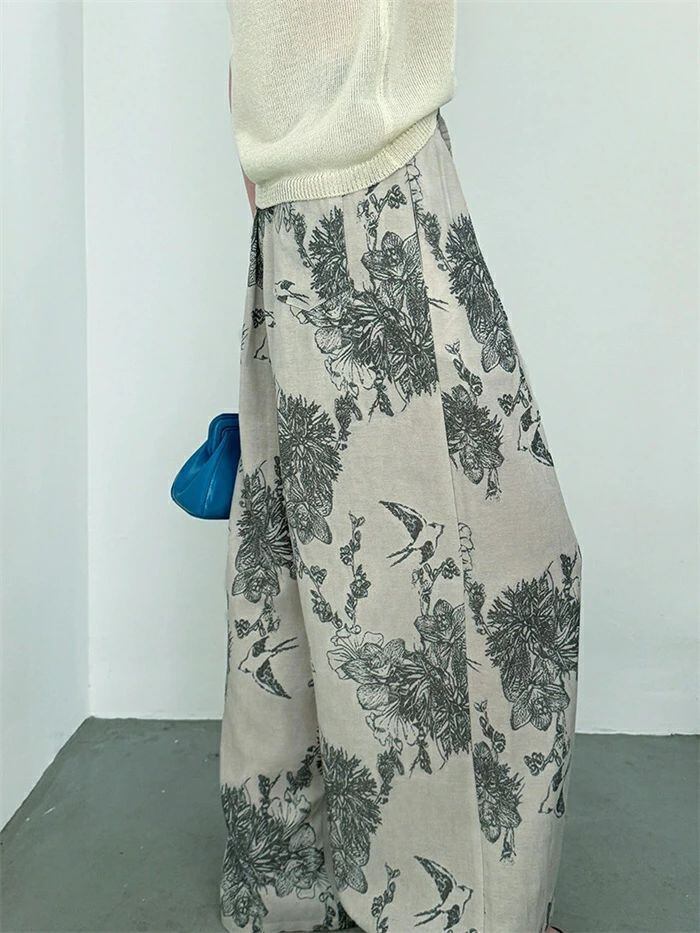 即納 ワイドパンツ レディース ガウチョパンツ ガウチョ リラックス パンツ ボトムス イージーパンツ パンツ 花柄 ワ総柄 アート ワイド ロ