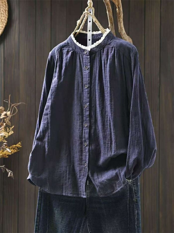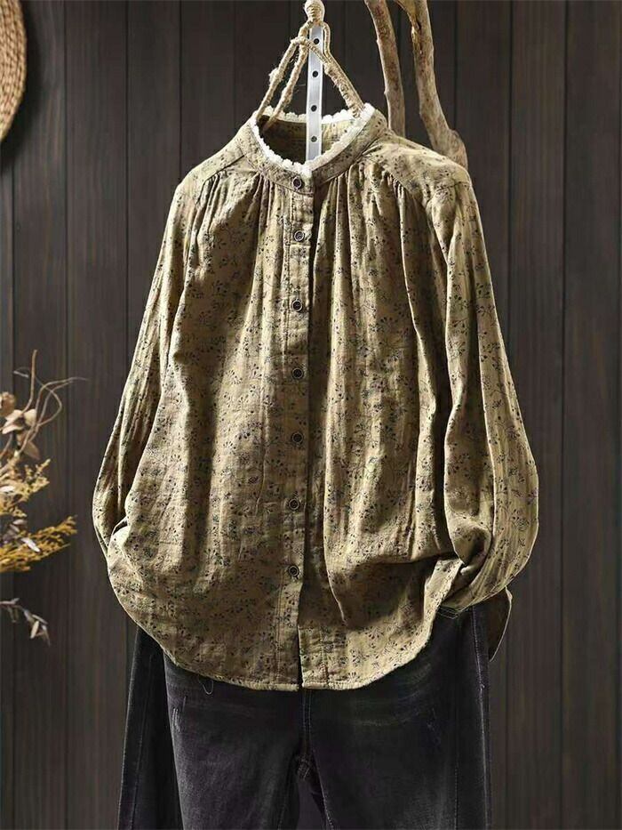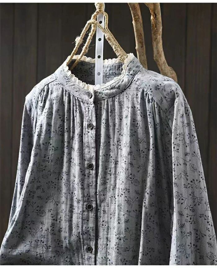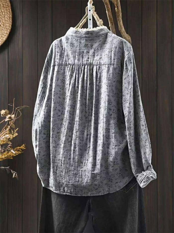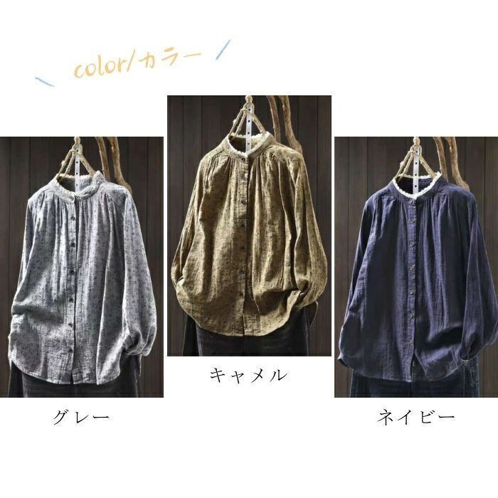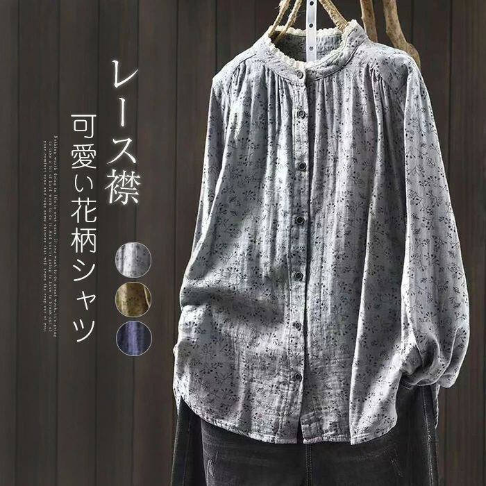 シャツ 花柄シャツ レディース 切り替えシャツ 綿シャツ レース襟 綿 花柄 切り替え コットン 可愛い シャツブラウス 長袖 綿ガーゼ ガーゼ