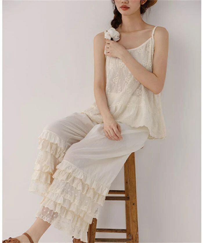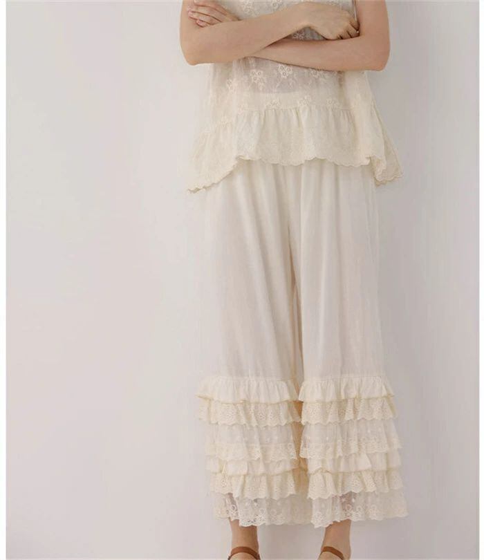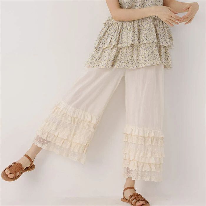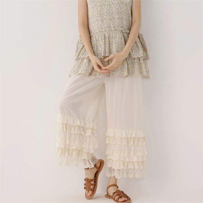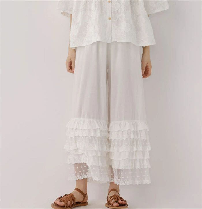 ロング ペチコート インナー スカラップ 刺繍 ペチパンツ レディース 春 夏 秋 ペチコート パンツ ロング ワンピース下 花柄刺繍 インナー