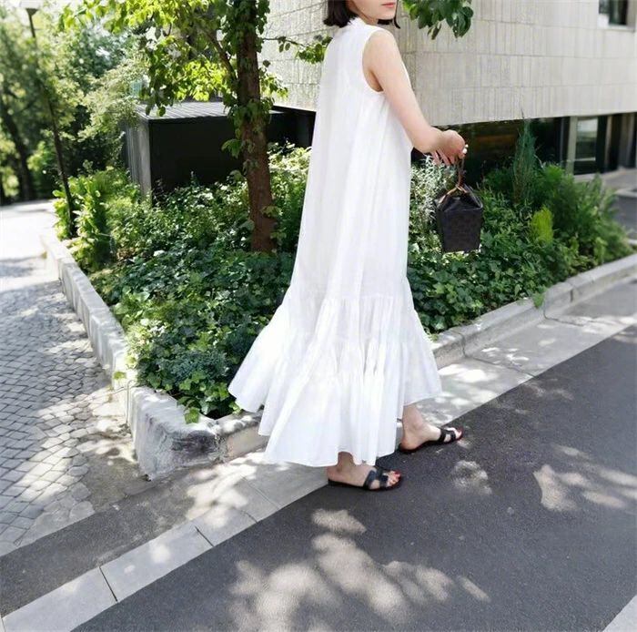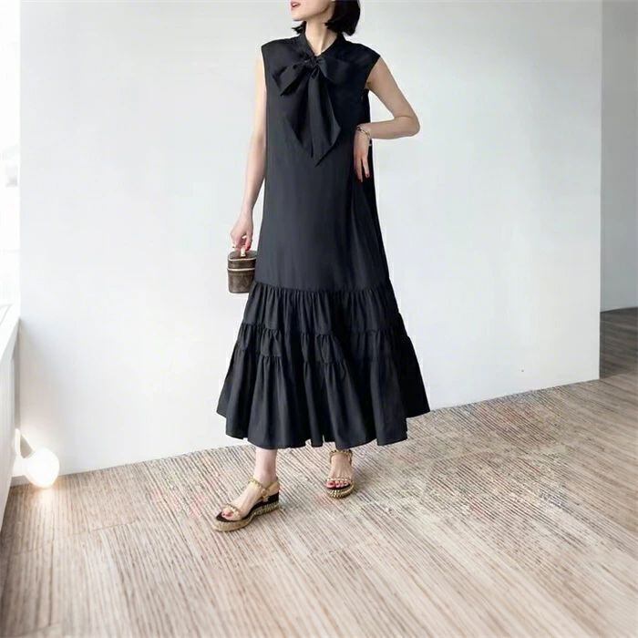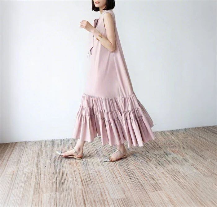 ワンピース レディース ロングワンピース ノースリーブ ジャンパースカート ロング丈 フリル裾 Aライン フレア ジャンスカ 無地 ゆったり 体型カバー 着?せ 可愛い 大人 通勤 フォーマル エレガント カジュアル おしゃれ 20代 30代 40代 50代