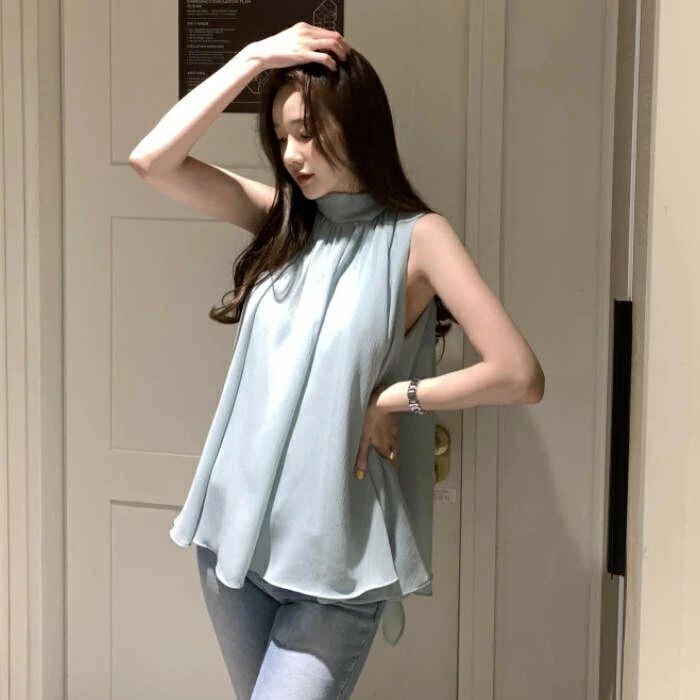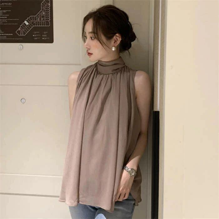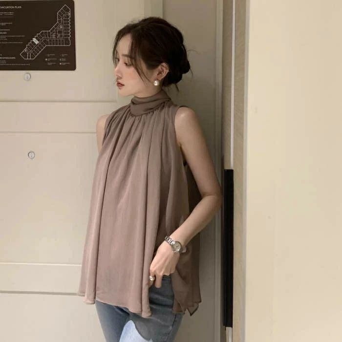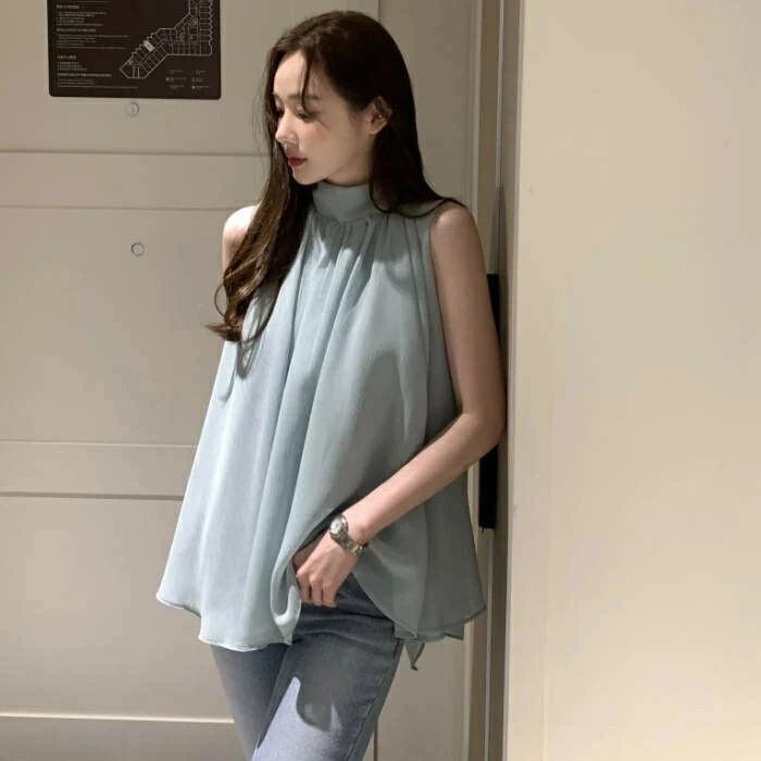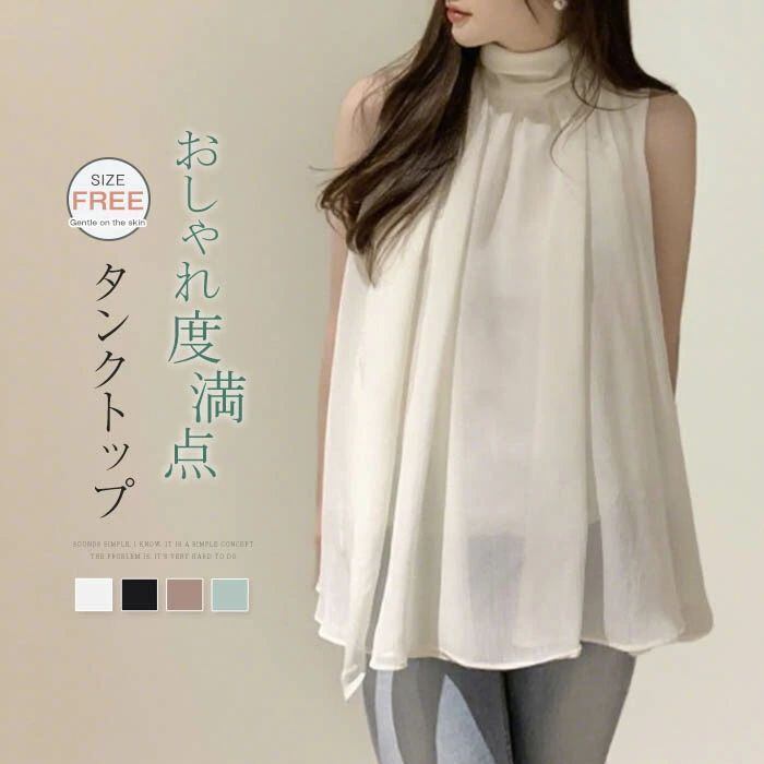 ブラウス レディース ノースリーブ タンクトップ ハイネック 無地 シフォン シャツ フリル シンプル とろみシャツ Aライン 立ち襟 シャツブラウス サテン カジュアル オフィス フォーマル 通勤 OL 着痩せ 女子会 デート お出かけ リゾート エレガント フェミニン トレンド感 カジュアル おしゃれ シンプル 通勤 OL 無地 春 夏 涼しい 送料無料 20代 30代 40代 おしゃれ かわいい 上品 大人可愛い