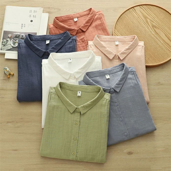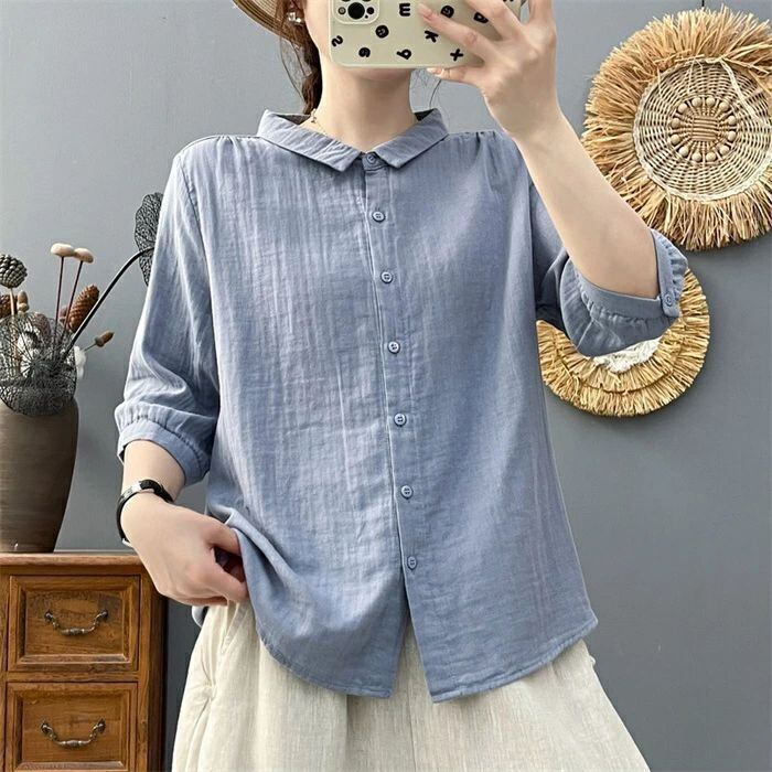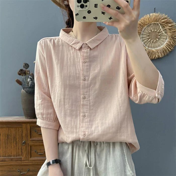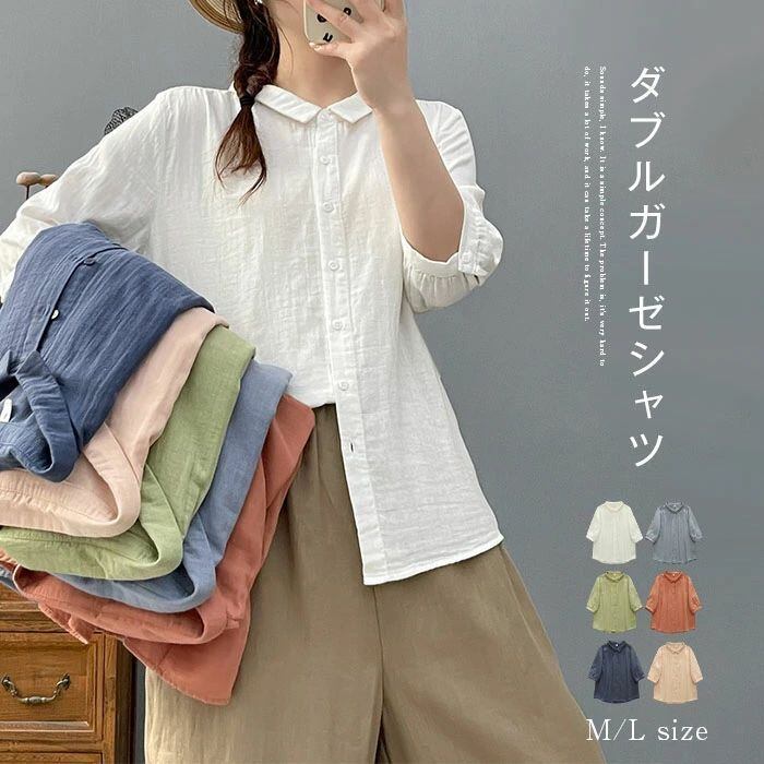 ダブルガーゼシャツ シャツ レディース ダブルガーゼ 白シャツ シャツブラウス 綿ガーゼ ブラウス 無地 2重ガーゼ コットン 綿シャツ 折襟 カーディガン トップス ゆったり 体型カバー 楽ちん ナチュラル おしゃれ 着回し カジュアル シンプル 大人 通勤OL 通学