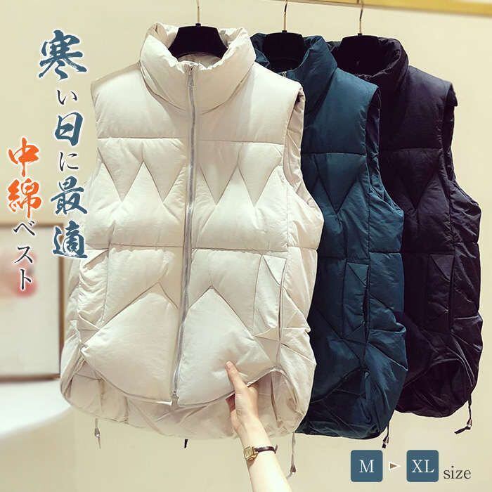 ダウンベスト レディース 秋冬 中綿ベスト ライトアウター 前開き キルティング トップス 羽織り 厚手 防寒 量軽 ノースリーブ ポケット付