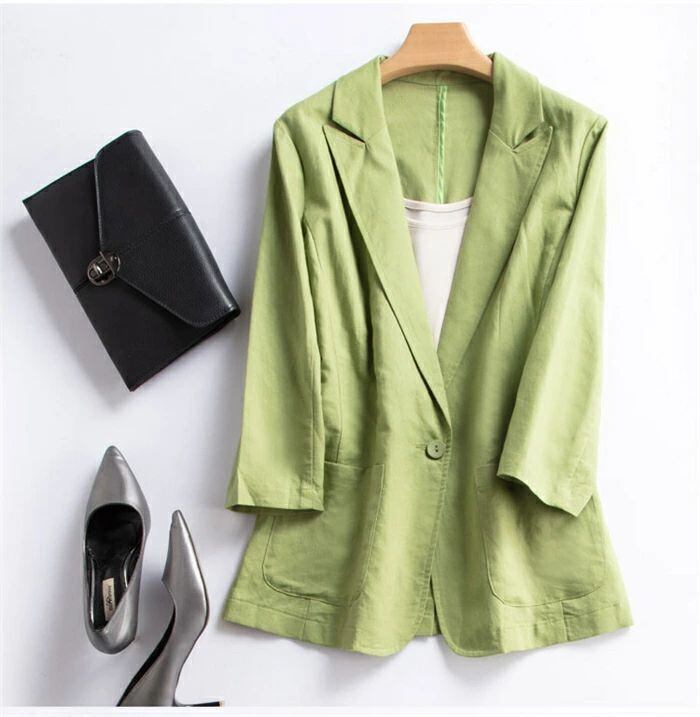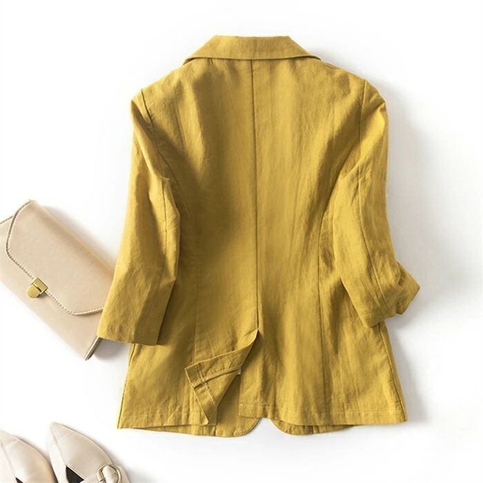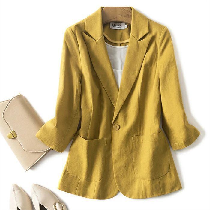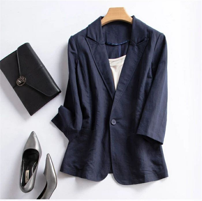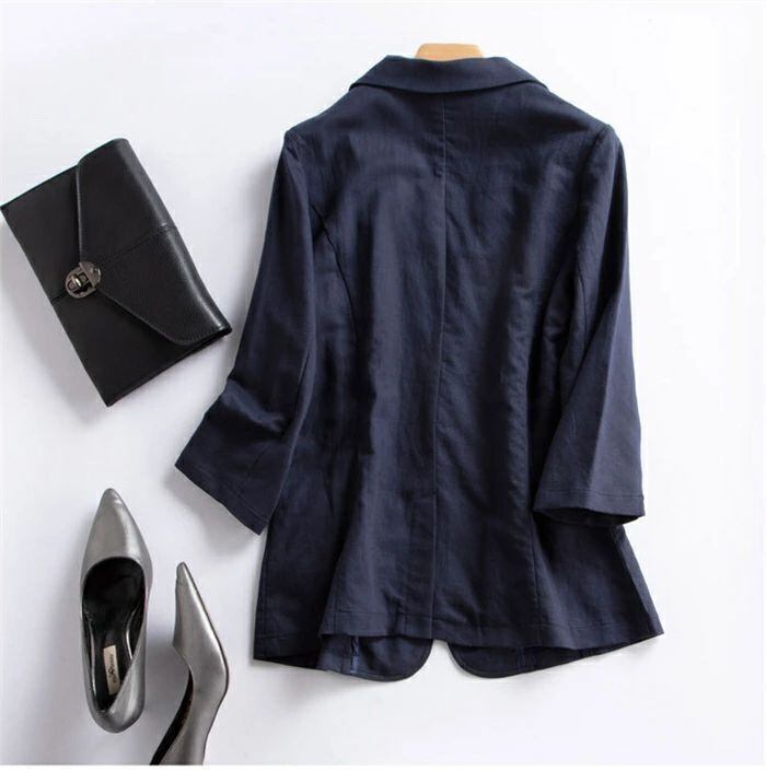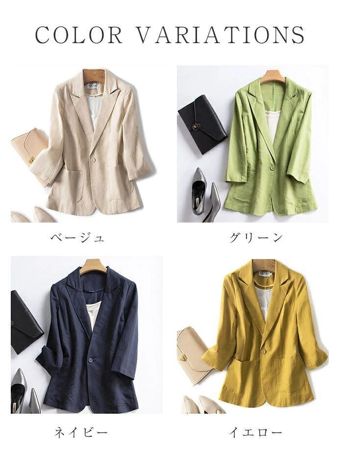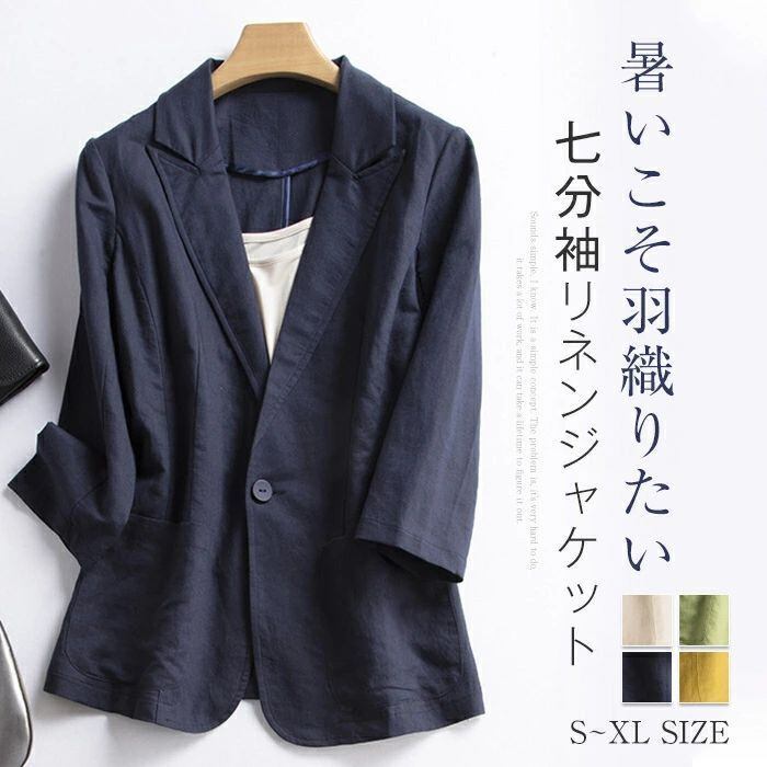 リネンジャケット レディース テーラードジャケット 七分袖ジャケット 無地 アウター リネン オフィス カジュアル 麻混 サマージャケット