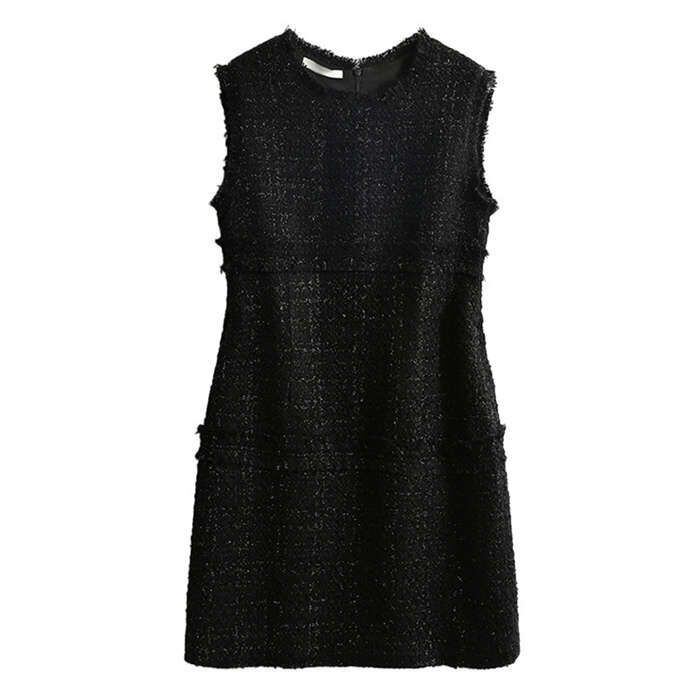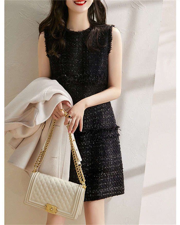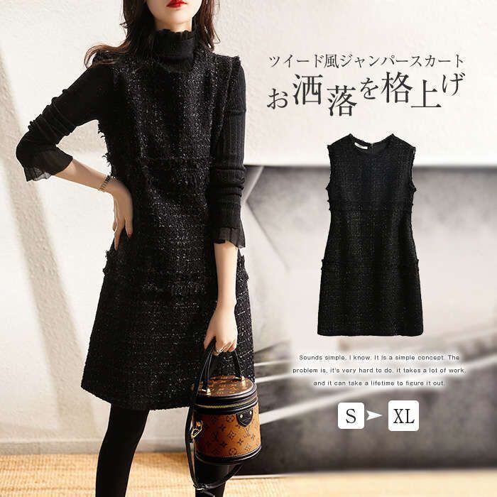 ジャンパースカート ツイード風 春 秋 レディース ノースリーブ クルーネック スカート ジャンスカ 膝丈 ツイード 女性 きれいめ 重ね着 大