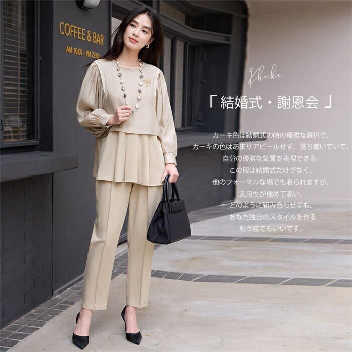 セットアップ パンツスーツ レディース 結婚式 スーツ フォーマル 2点セット ビジネススーツ オフィス 卒業式 入学式 卒園式 きれいめ 長袖 トップス ワイドパンツ 楽ちん ゆったり 体型カバー おしゃれ 着?せ 通勤OL カジュアル シンプル 発表会 20代 30代 40代 50代 送料無料