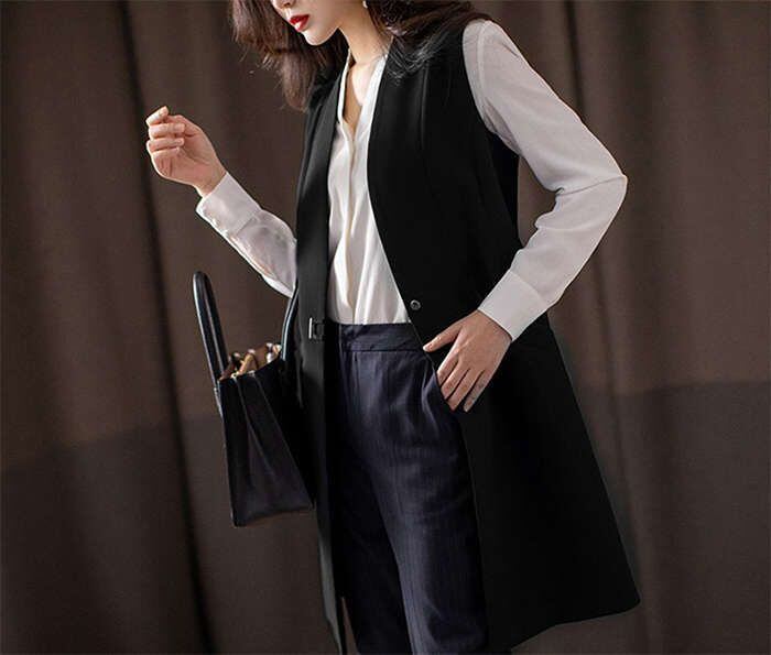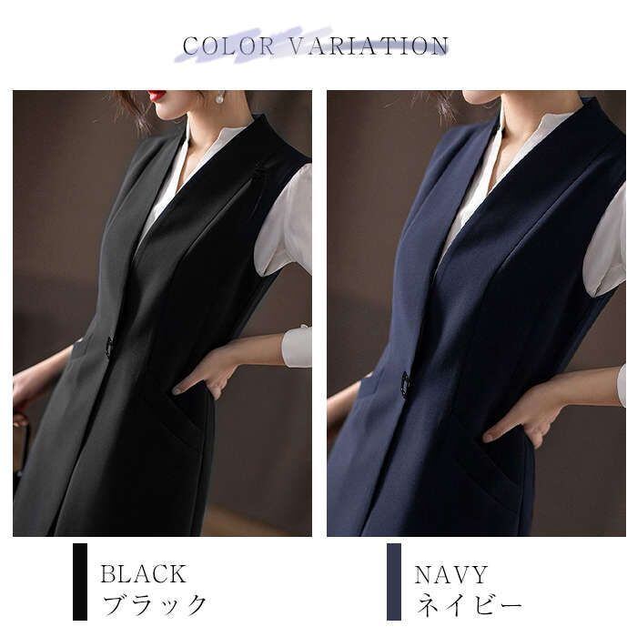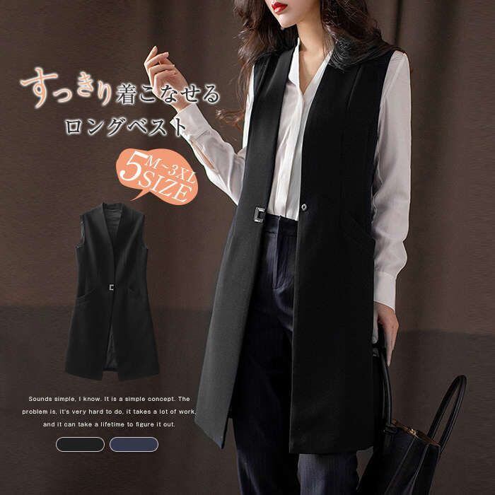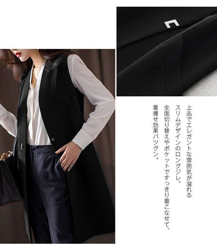 即納 ジレ ロングジレ レディース ロングジレベスト Vネック 春秋 ロング ベスト トップス ノーカラー ベスト ロング丈 羽織り ノースリー
