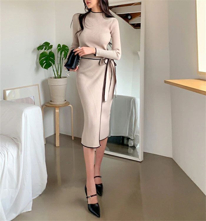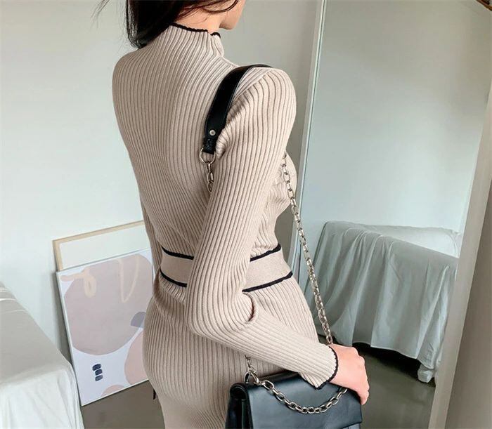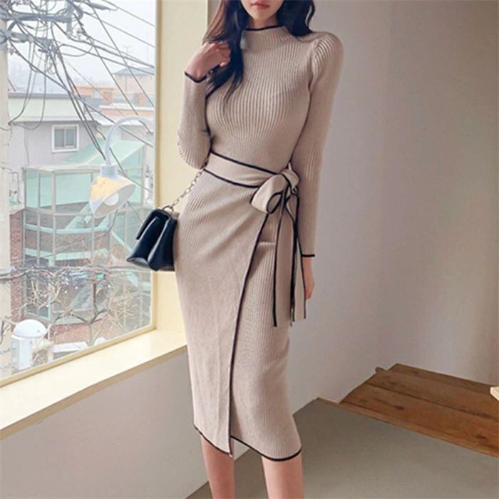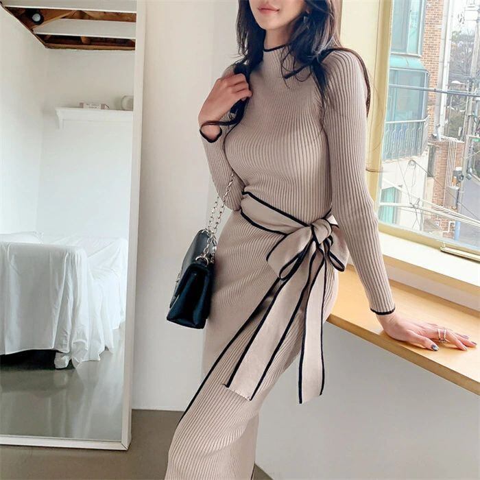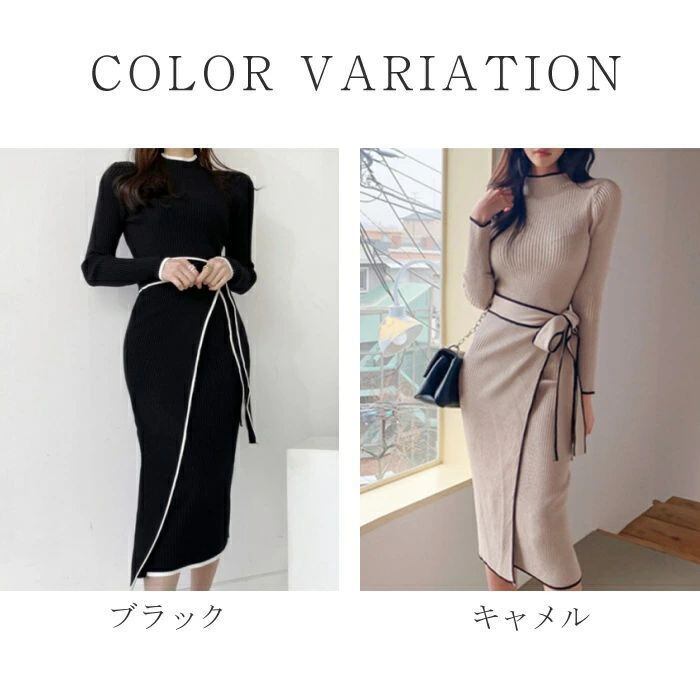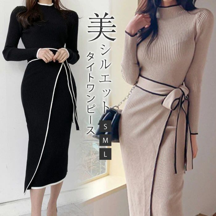 ニットワンピース ニット レディース 秋冬 ワンピ タイトワンピース タイト ロングワンピース ロング丈 ニットワンピ リブ リブニット 無地