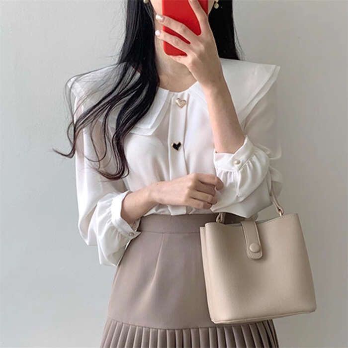 ブラウス 長袖 白 女の子 きれいめ オフィス 長袖シャツブラウス レディース 長袖ブラウス 春秋 オフィスブラウス ビッグカラーブラウス シ