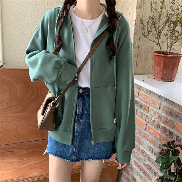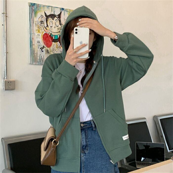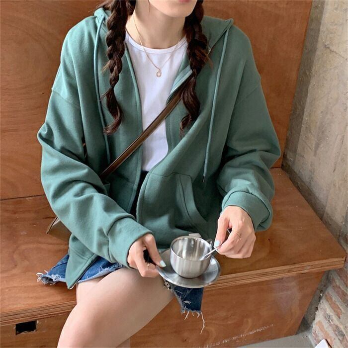 パーカー レディース 春秋 長袖 フード付きパーカー アウター 前開き スウェット 羽織り ZIPパーカー シンプル 無地 ジップアップ ポケット