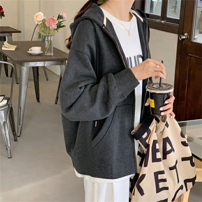 パーカー レディース 春秋 長袖 フード付きパーカー アウター 前開き スウェット 羽織り ZIPパーカー シンプル 無地 ジップアップ ポケット 体型カバー フーディー ファスナー スウェット トレーナー おしゃれ コート可愛い ルームウェア カジュアル 通学 20代 30代 40代