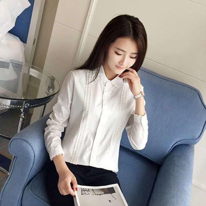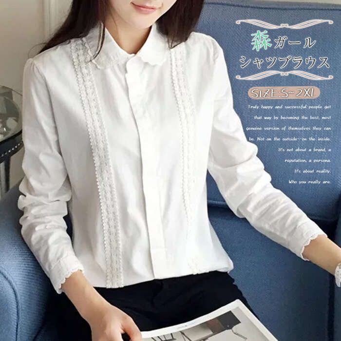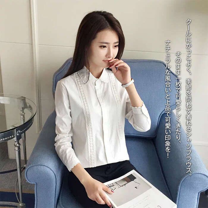 シャツ ブラウス レディース オフィス 綿 カジュアル スーツインナー 定番 ホワイト 森ガール 清新 可愛い ガーリー 学院風 トップス 長袖
