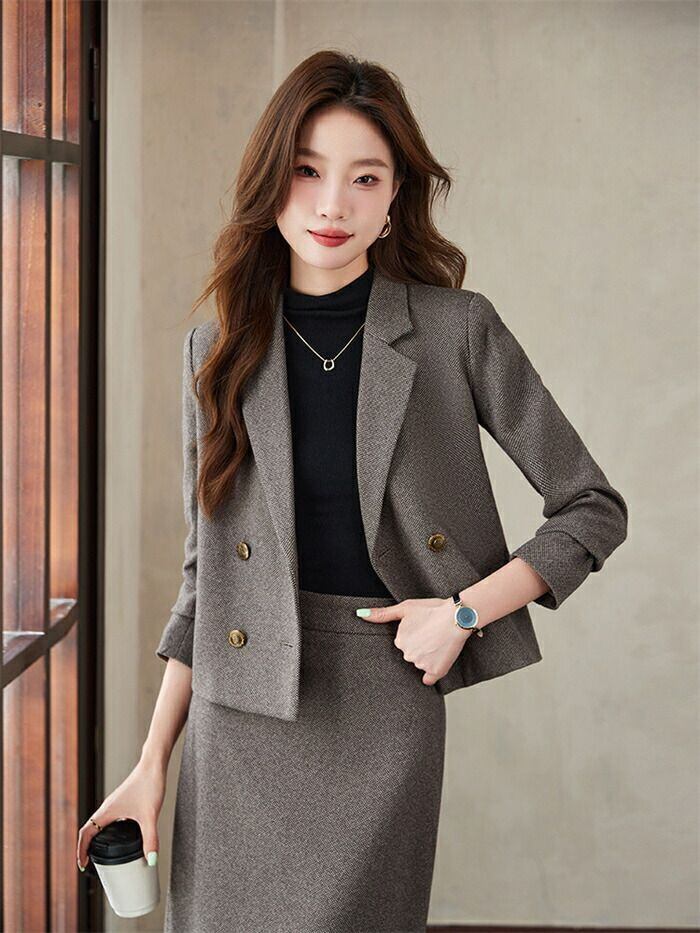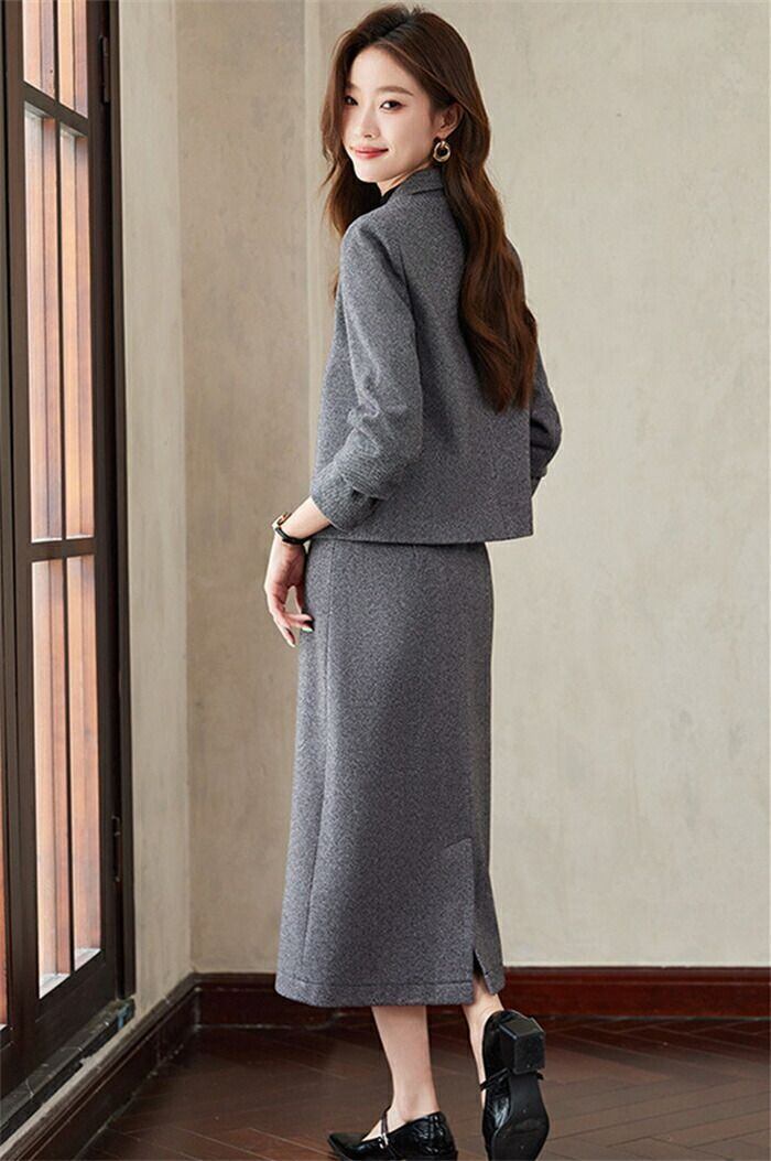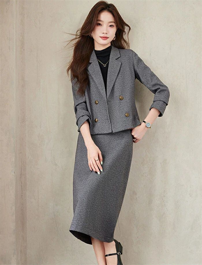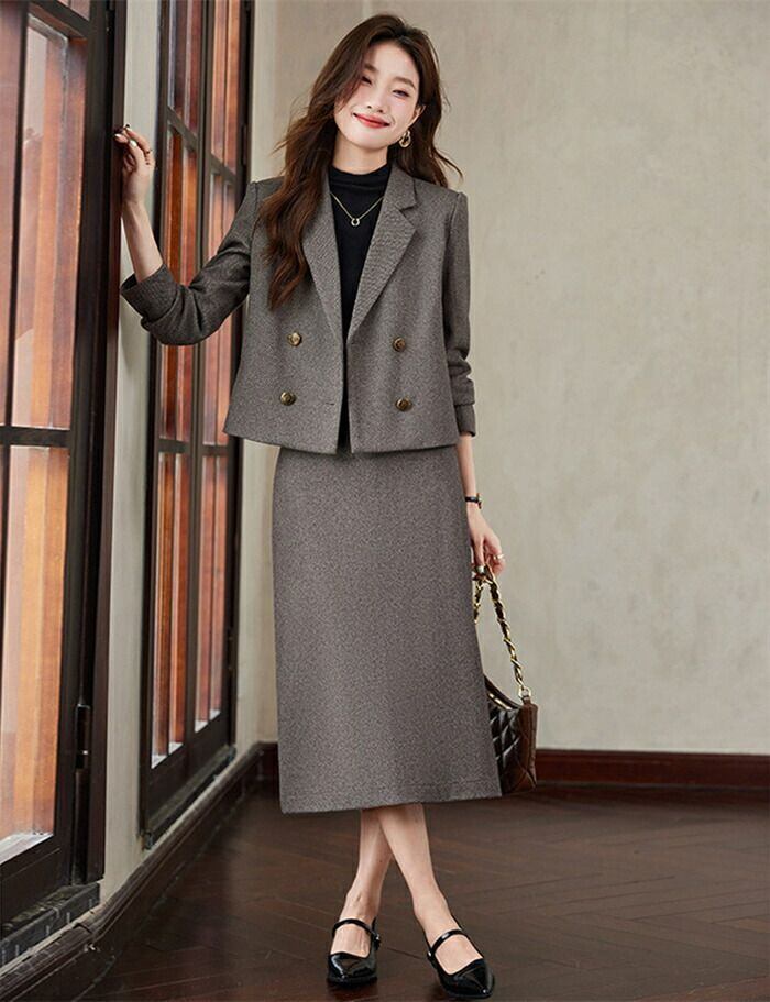 スーツ レディース 2点セット ロングスカート スカートスーツ ジャケット+スカート カジュアル 冠婚葬祭 二次会 春 秋 冬 ダブルボダンスー