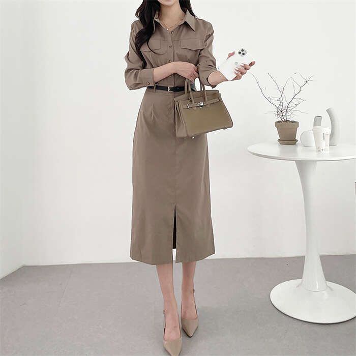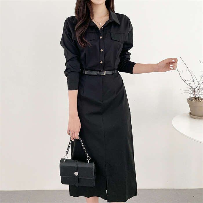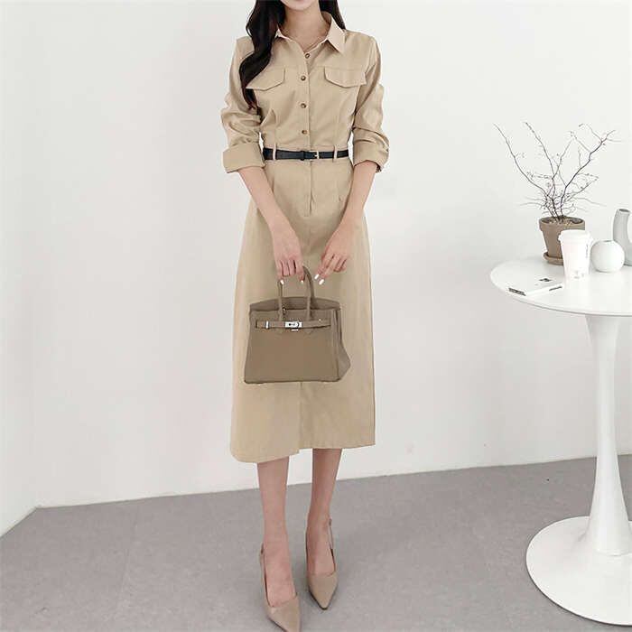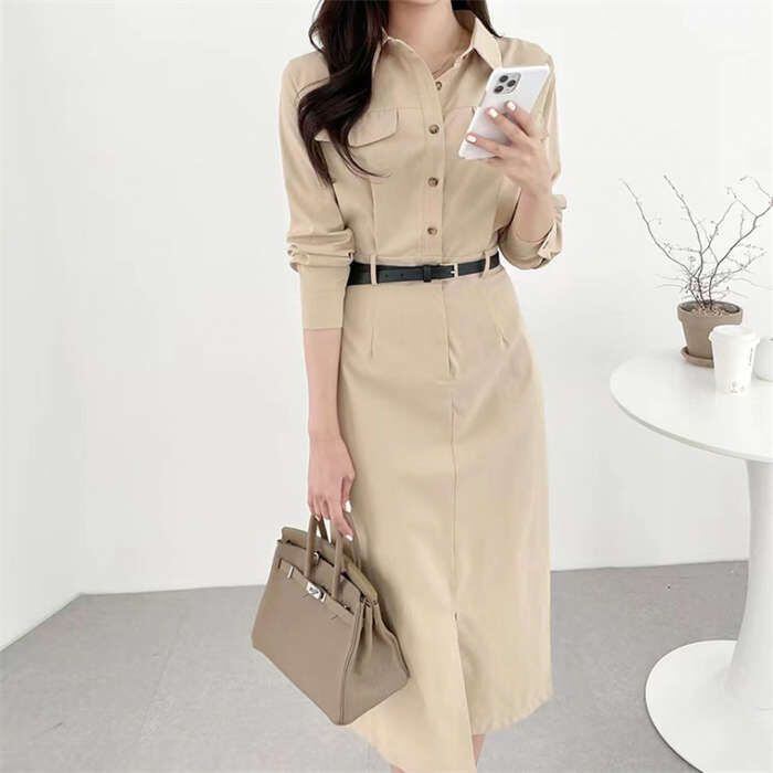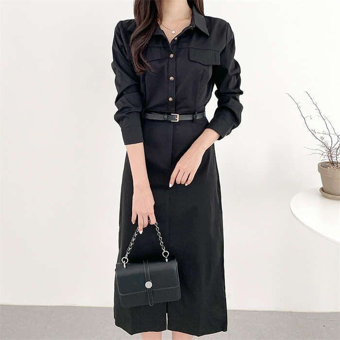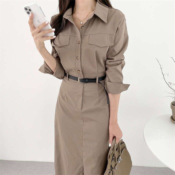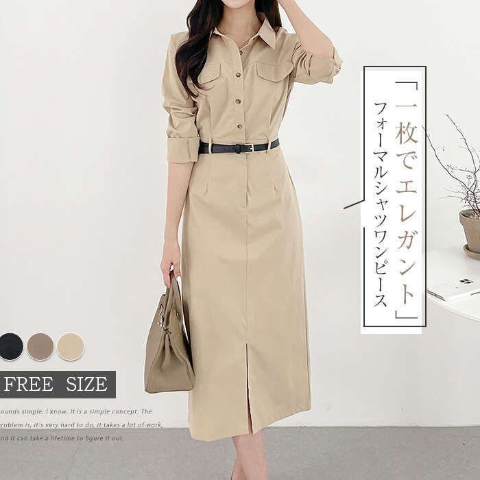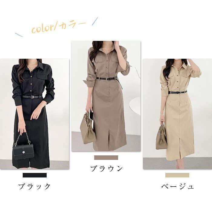 ワンピース レディース 長袖 春 秋 無地 切り替え ロングワンピース シャツワンピース フォーマル ロングワンピ Aライン きれいめ 春秋 カ