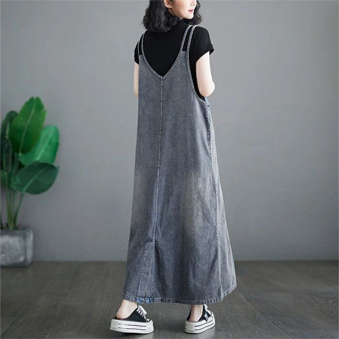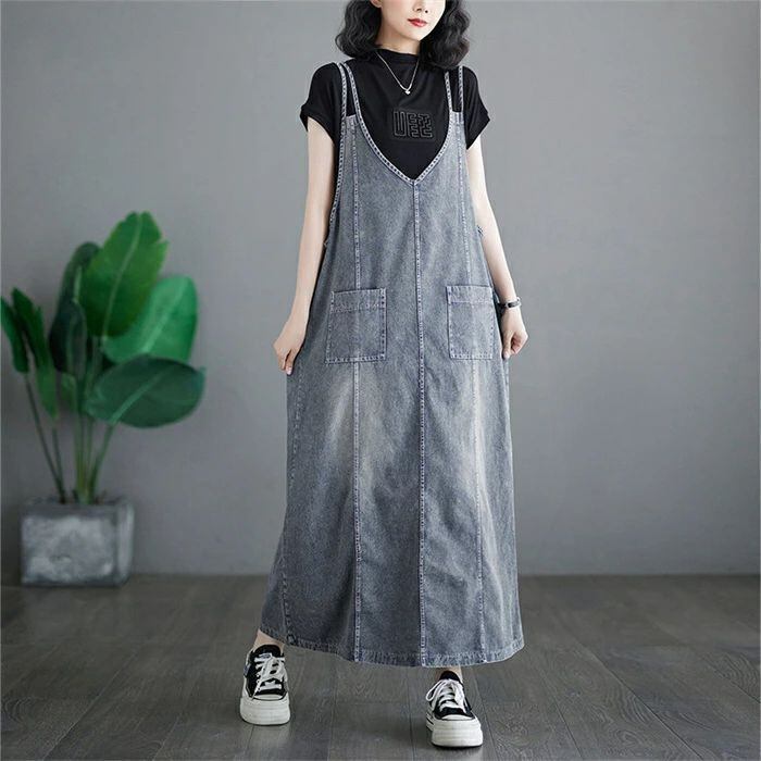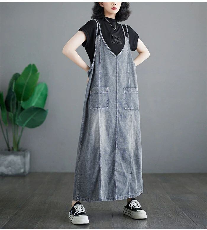 スママワンピース刺繍ワンピースデニムワンピース重ね着風ワンピースリネ