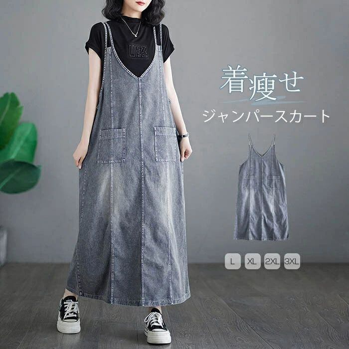 ジャンスカ デニムサロペット レディース 夏 デニム ジャンパースカート サロペット オーバーオール オールインワン サロペットスカート キ