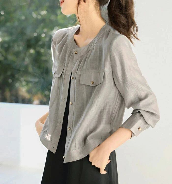 カーディガン レディース 夏 薄手 ライトアウター シアージャケット ノーカラー 夏アウター シアーパーカー 長袖 透け感 無地 トップス 羽織り 大きいサイズ ゆったり 体型カバー 日焼け対策 冷房対策 紫外線対策 オシャレ ガーリー 通勤 OL UVカット 送料無料 30代 40代 50代