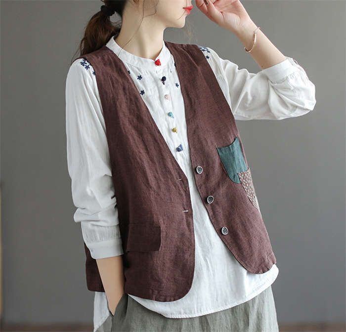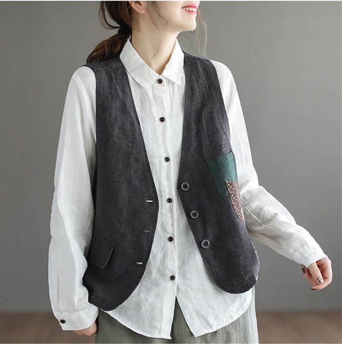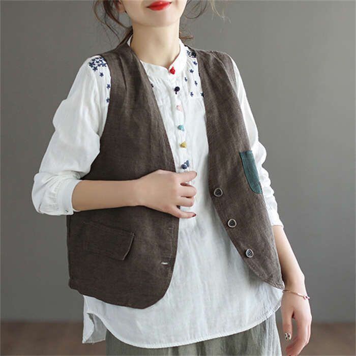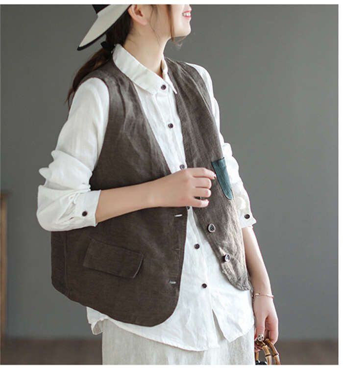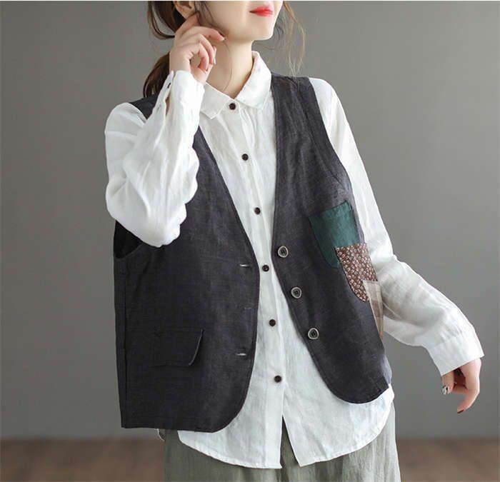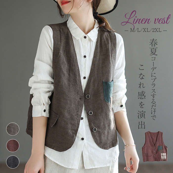 ジレ レディース ベスト レディース 春夏 ベスト レディース 夏 リネン ベスト レディース おしゃれ ベスト ベスト 薄手 前開き トップス