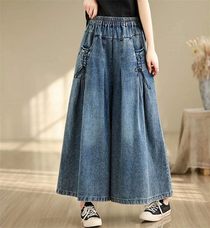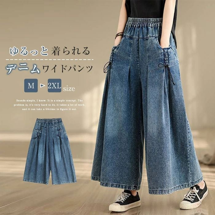 デニムパンツ レディース 秋冬 デニム ワイドパンツ パンツ イージーパンツ ロングパンツ ポケット付き ワイド ボトムス ズボン ウエストゴ