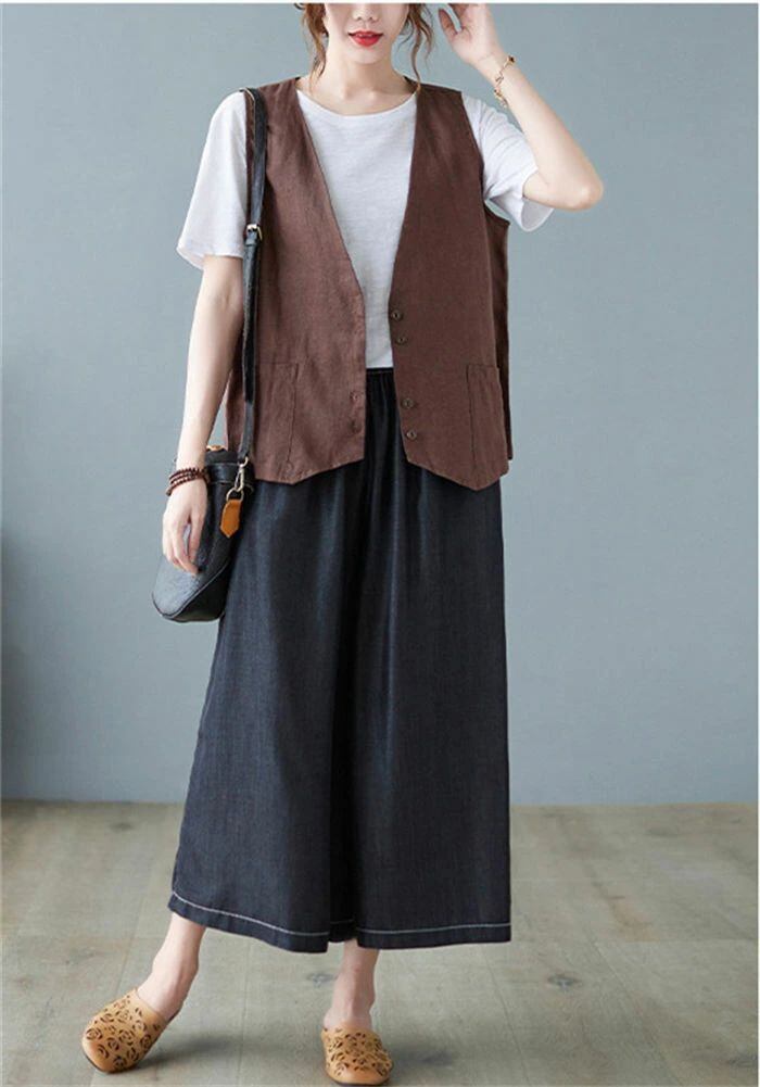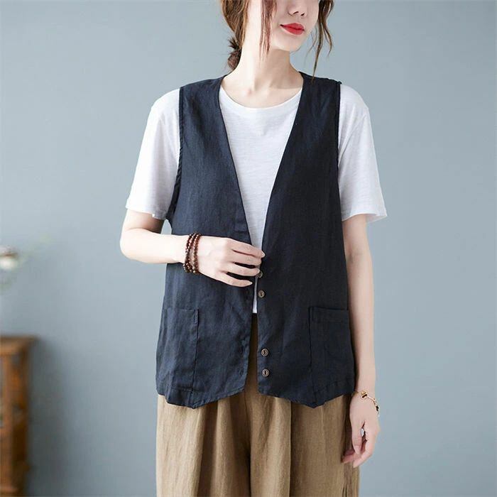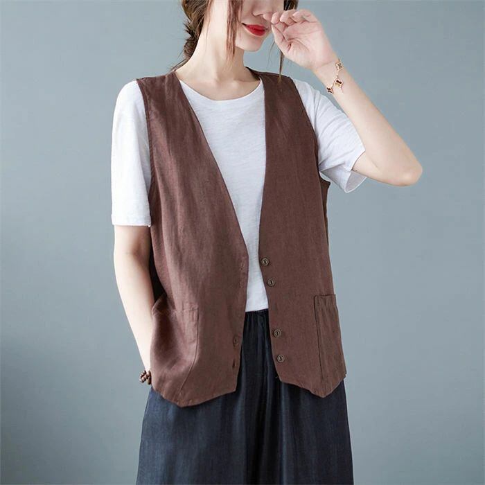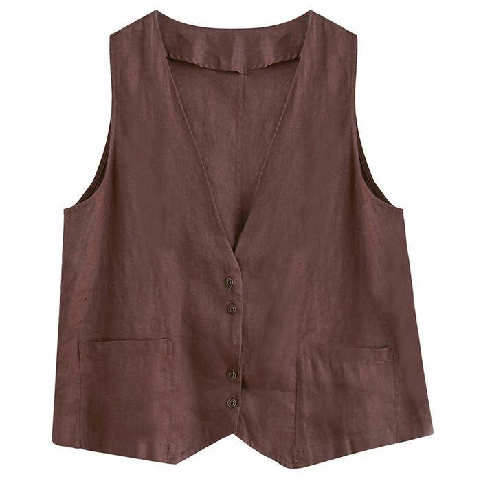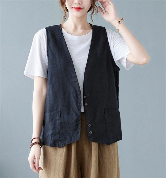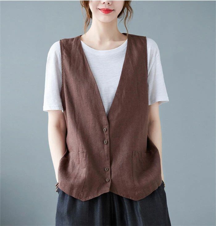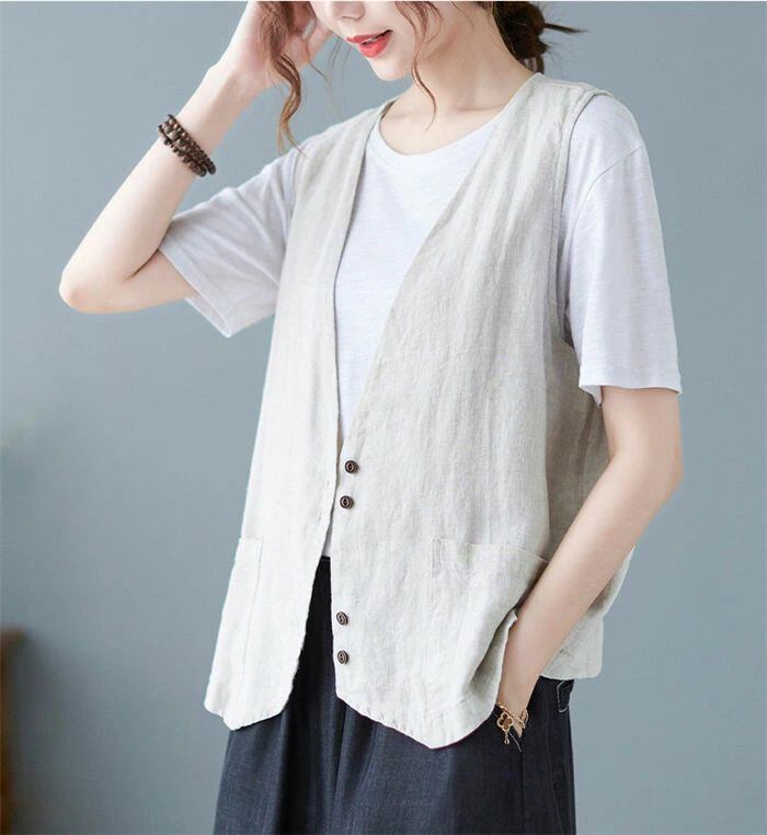 ジレ レディース 春夏 綿麻風 ベスト レディース サマー ベスト ショート丈 おしゃれ ベスト 前開き 薄手 トップス ゆったり 大きいサイズ