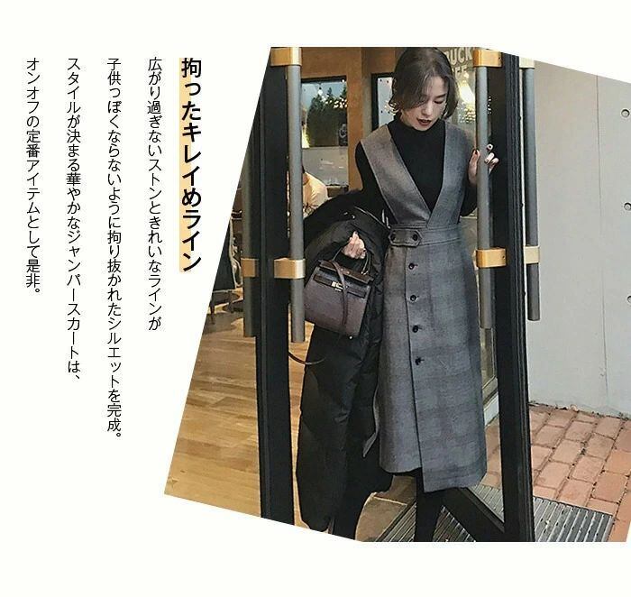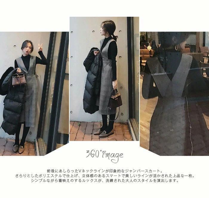 前後にあしらったVネックラインが印象的なジャンパースカート。