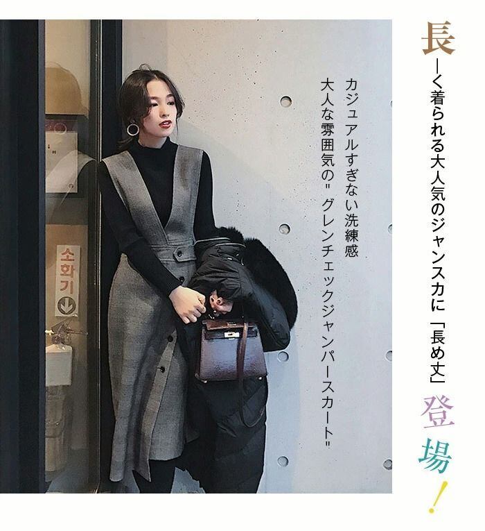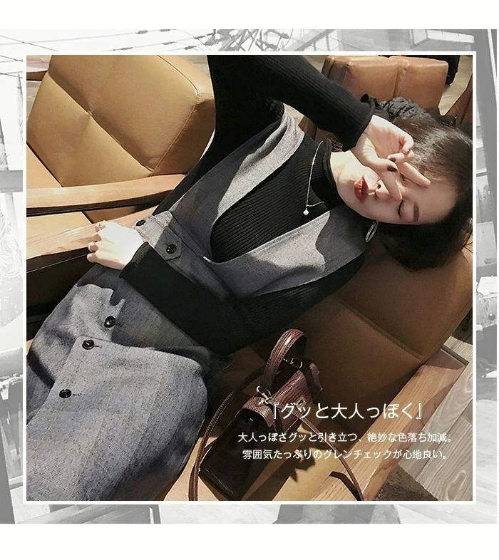 即納 『ジャンスカ+ニットの2点セットアップ』ジャンスカ ジャンパースカート リブニット グレンチェック セットアップ サロペットスカート