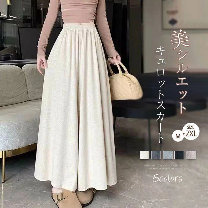 キュロットスカート ワイドパンツ パンツ レディース 秋冬 ワイド フレア フレアパンツ ロングパンツ ハイウエスト ロング丈 ボトムス ズボン 無地 イージーパンツ ウエストゴム 大きいサイズ ゆったり 体型カバー 着痩せ 通勤 カジュアルパンツ お洒落 きれめ シンプル 30代 20代 40代