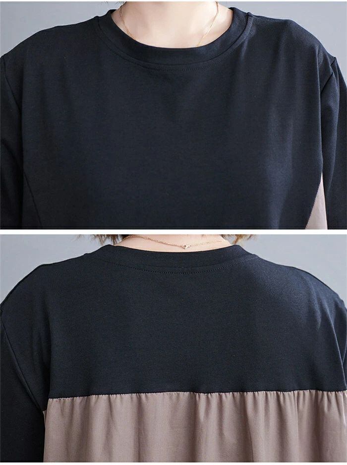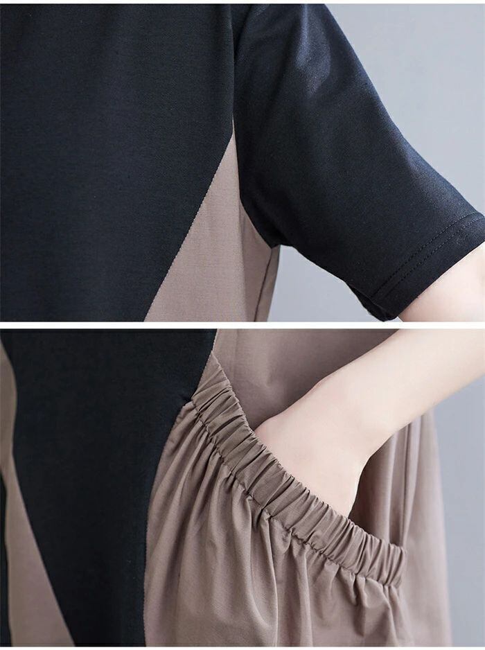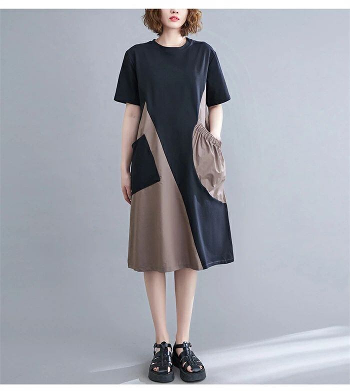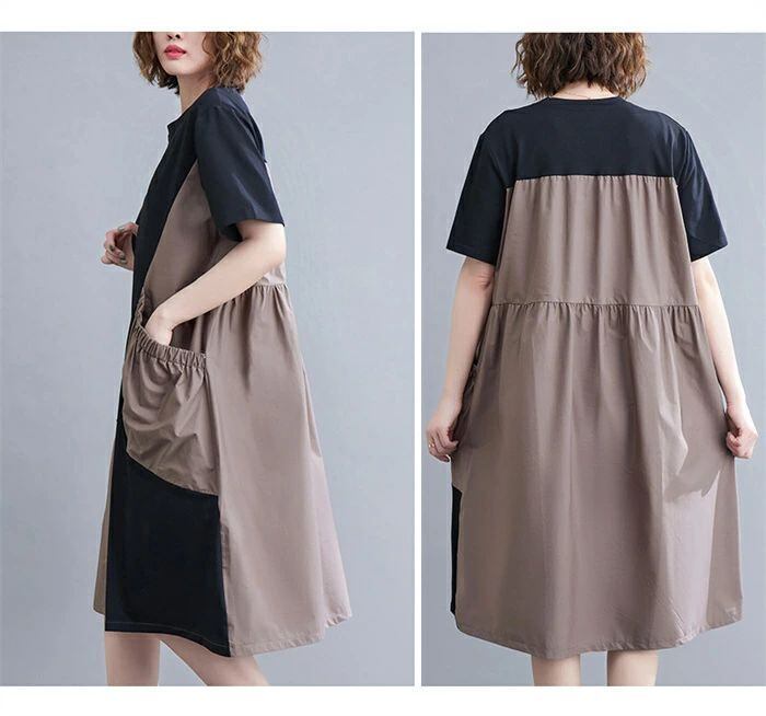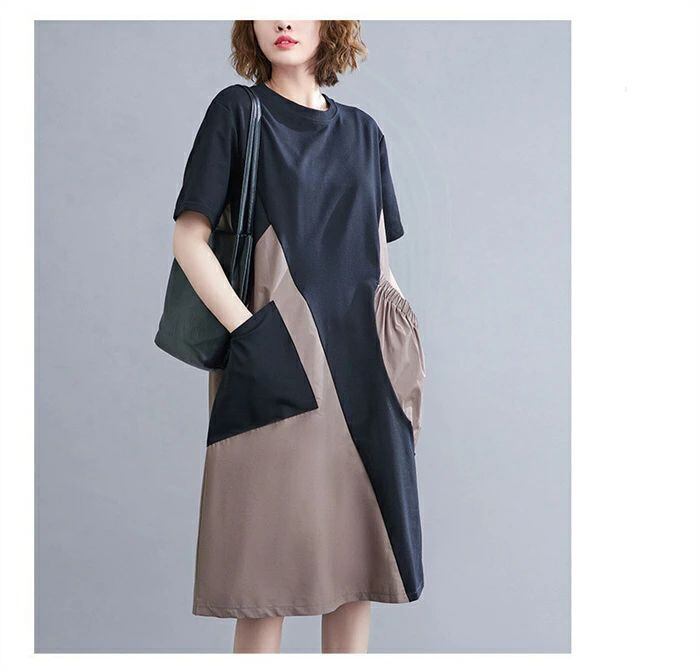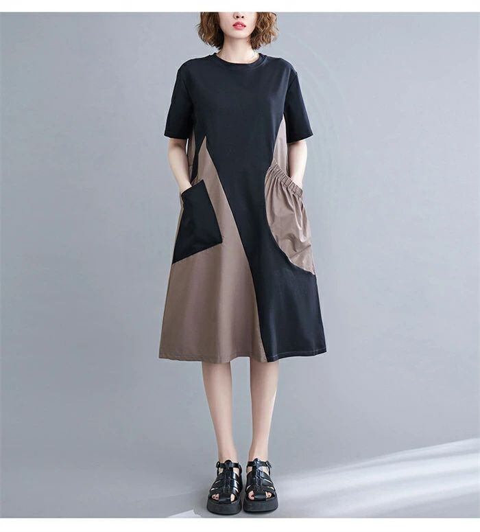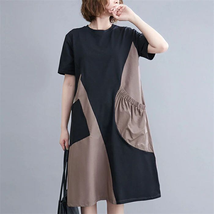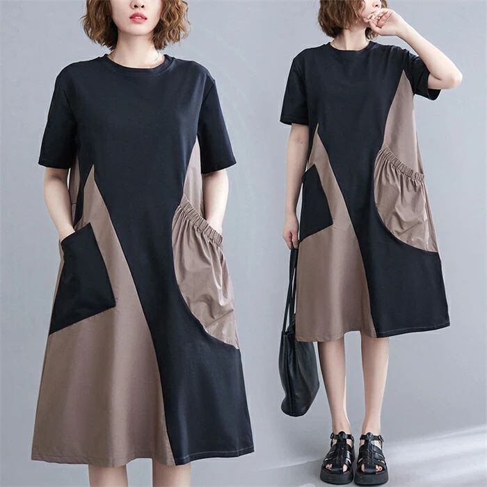 ワンピース 膝丈 レディース 切り替え ワンピース 夏 チュニック ワンピース 半袖 aライン Aライン バイカラー ゆったり 着痩せ 体型カバー