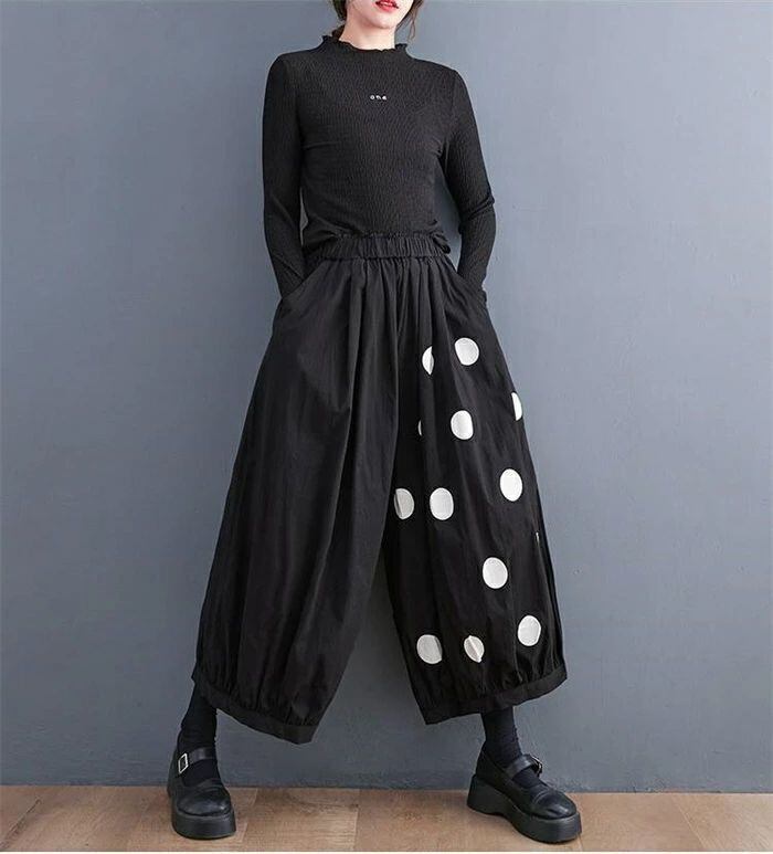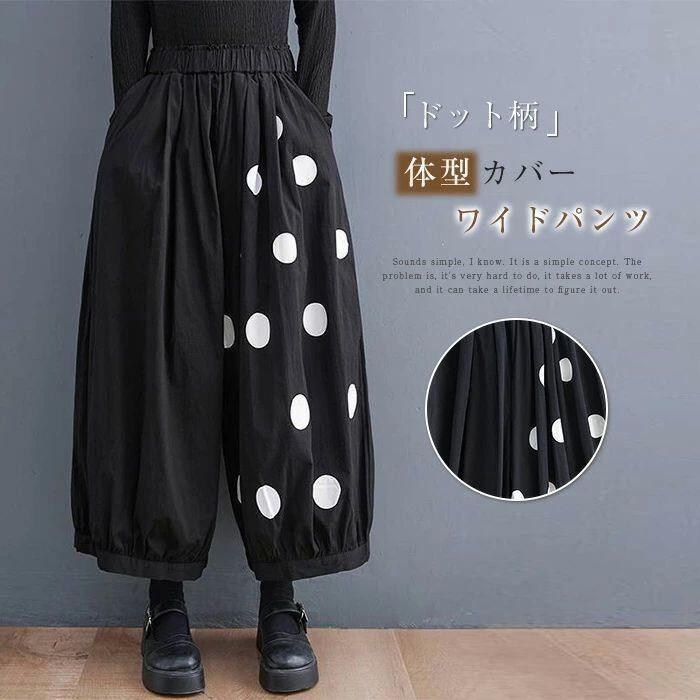 ワイドパンツ ワイド パンツ レディース バルーンパンツ 春秋 ガウチョパンツ イージーパンツ ドット柄 ボトムス ズボン バギーパンツ ポケット付き ゆったり 体型カバー 着?せ 美脚 シンプル カジュアル おしゃれ 通勤 お出かけ お呼ばれ 30代 40代 50代