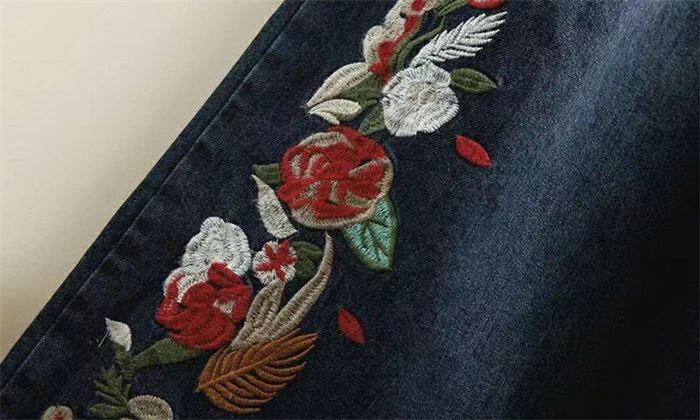 デニム ワイドパンツ レディース デニムパンツ 刺繍 七分丈 花柄 イージーパンツ ワイド デニムワイドパンツ キュロットスカート 大きいサ