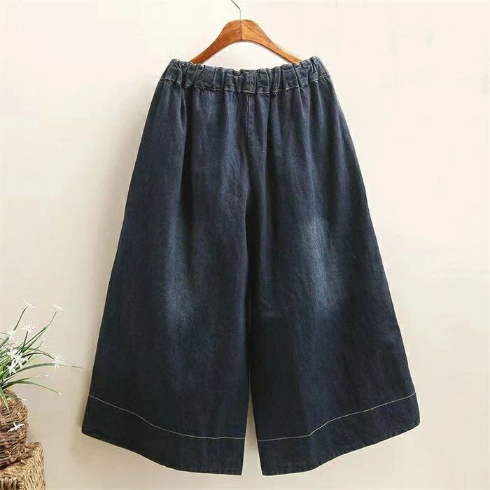 デニム ワイドパンツ レディース デニムパンツ 刺繍 七分丈 花柄 イージーパンツ ワイド デニムワイドパンツ キュロットスカート 大きいサイズ ウエストゴム ボトムス ズボン ゆったり 体型カバー レトロ カジュアル シンプル お洒落 きれいめ 着回し 大人 20代 30代 40代 50代 送料無料